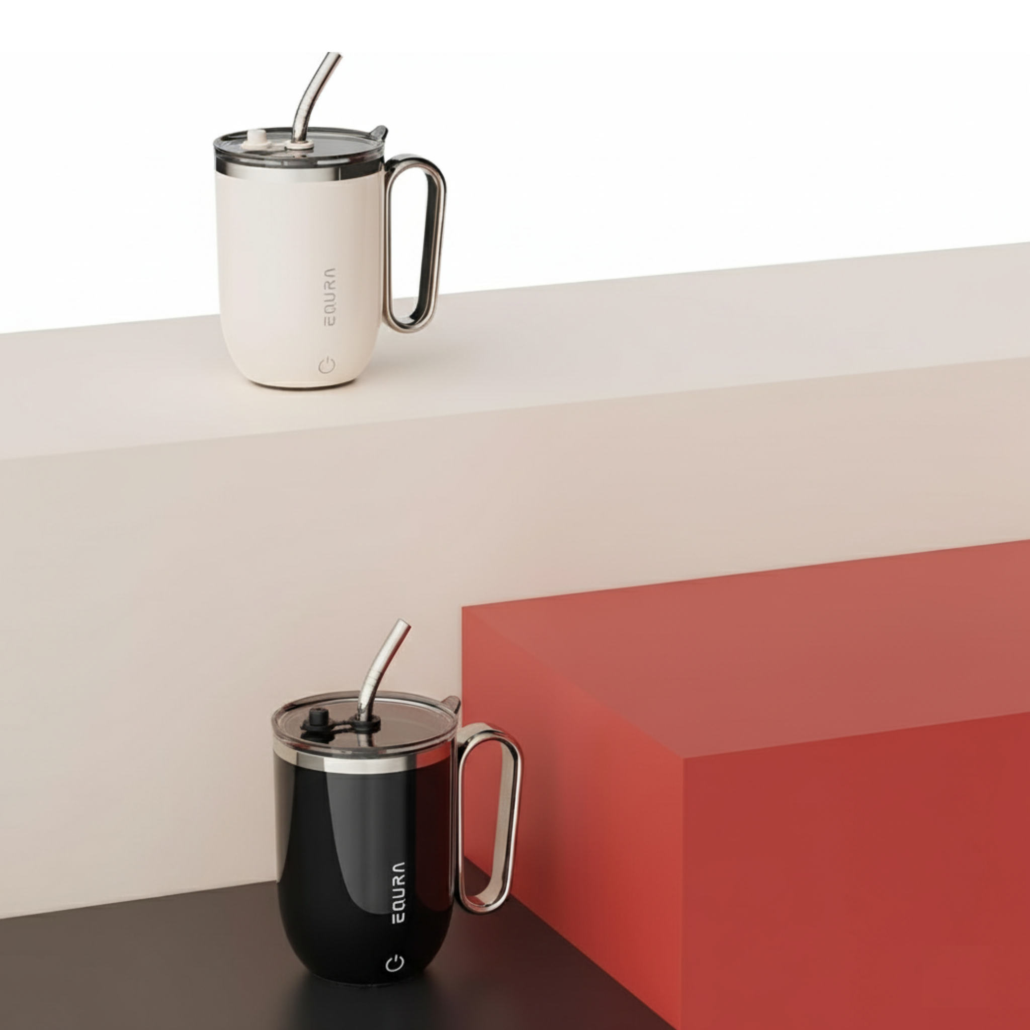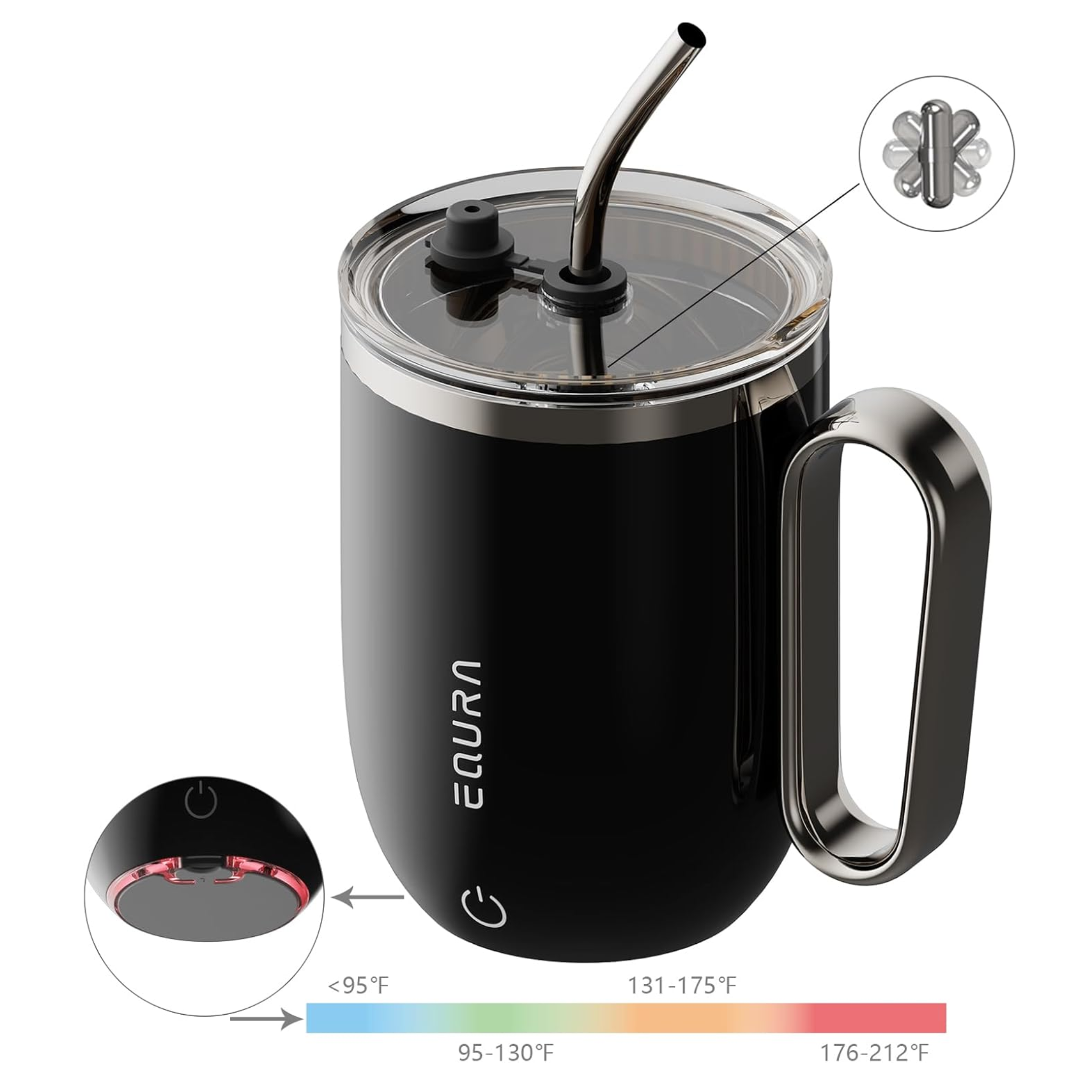 كوب قهوة ذاتي التحريك مع ماصة وشاشة عرض درجة الحرارة LED، كوب خلط مغناطيسي أوتوماتيكي مع غطاء