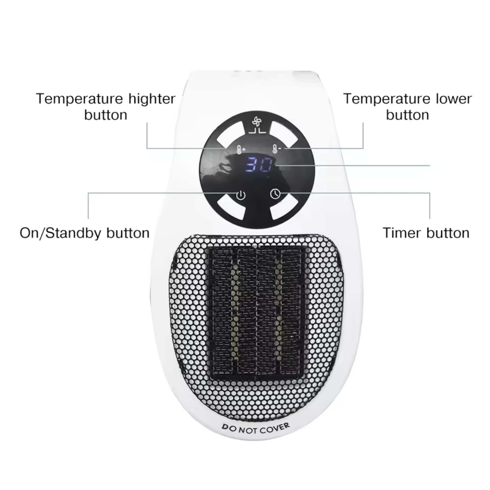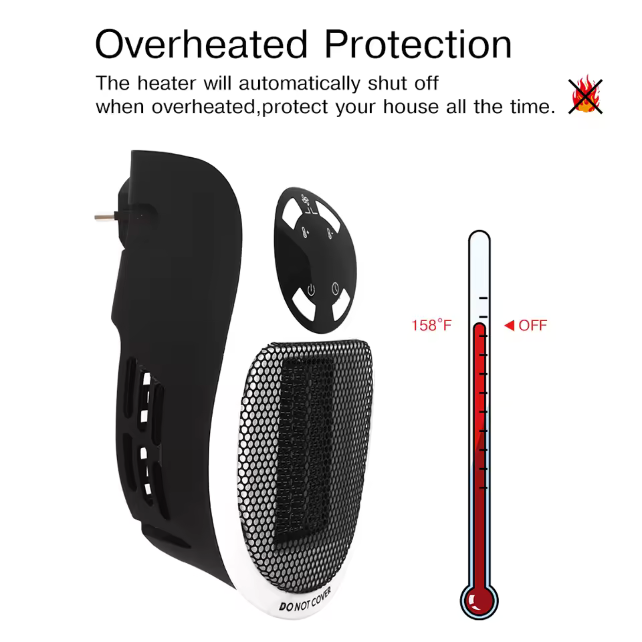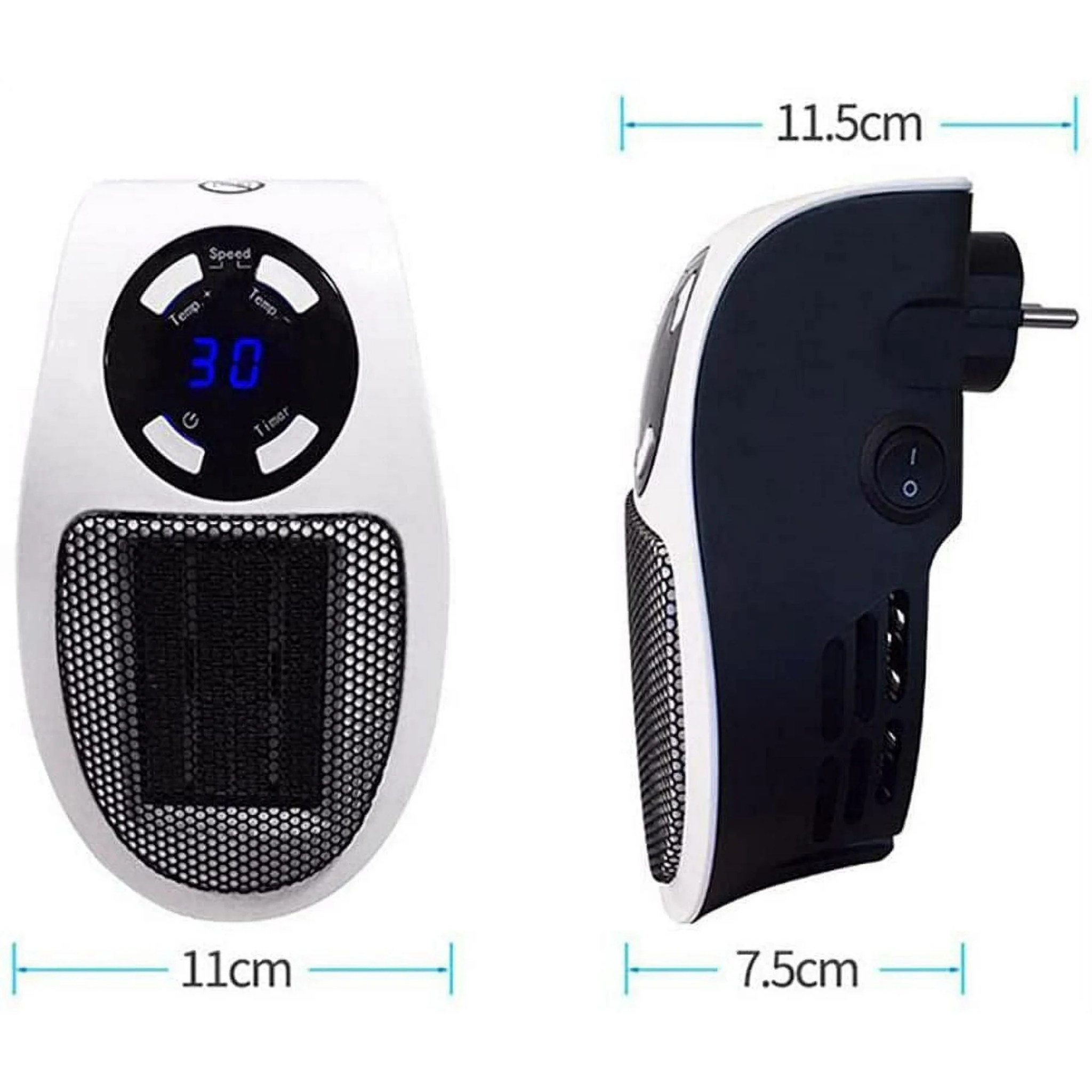 سخان كهربائي صغير محمول بقوة 500 واط مع مؤقت وحماية من الحرارة الزائدة