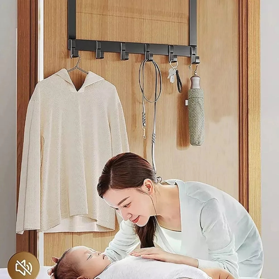 شماعة ملابس معدنية بـ 6 خطافات مثبتة في الجزء الخلفي من الباب