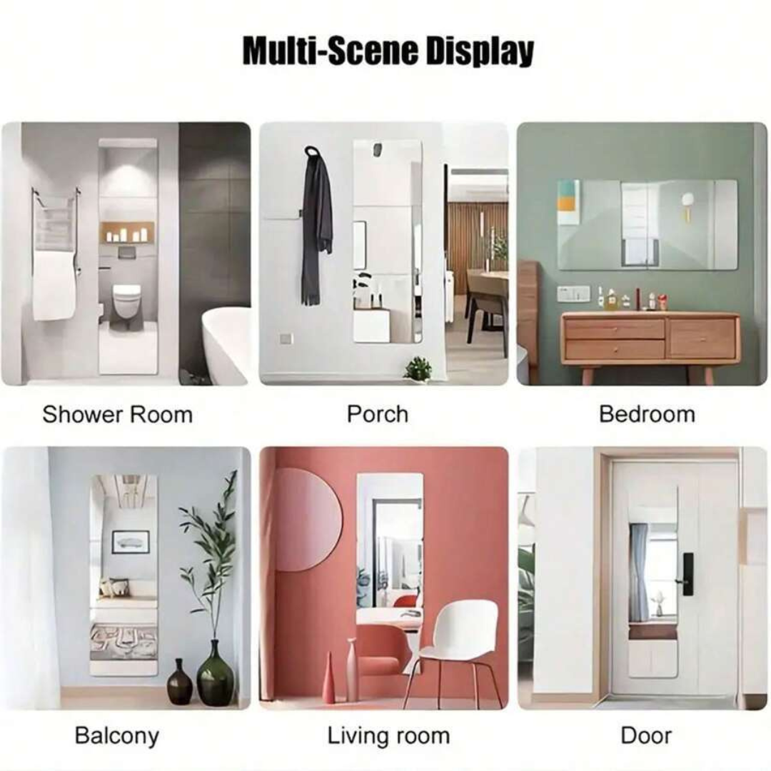 - مصنوعة من زجاج أكريليك عالي الجودة، تتميز مرآة الحائط ذاتية اللصق بسطح أملس وملمس فائق. لقد تم تصميمه ليكون آمنًا ومقاومًا للخدش ومقاومًا للكسر. يضمن سمك المرآة المعزز انعكاسات واضحة وواقعية.