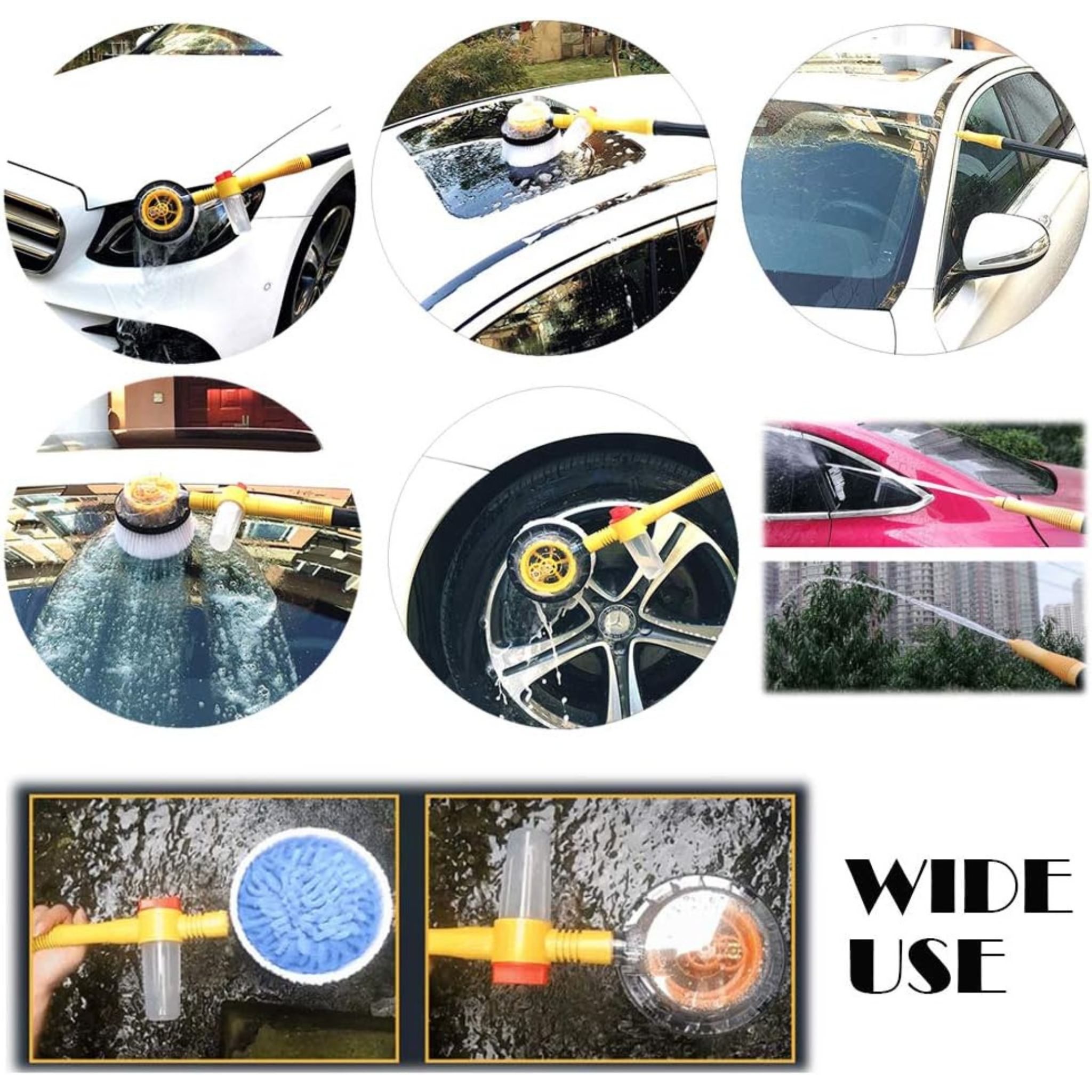 فرشاة غسيل السيارات الدوارة التلقائية مع خزان منظف، مسدس غسيل السيارات مع فرشاة إسفنجية ناعمة من الألياف الدقيقة وخرطوم قابل للسحب