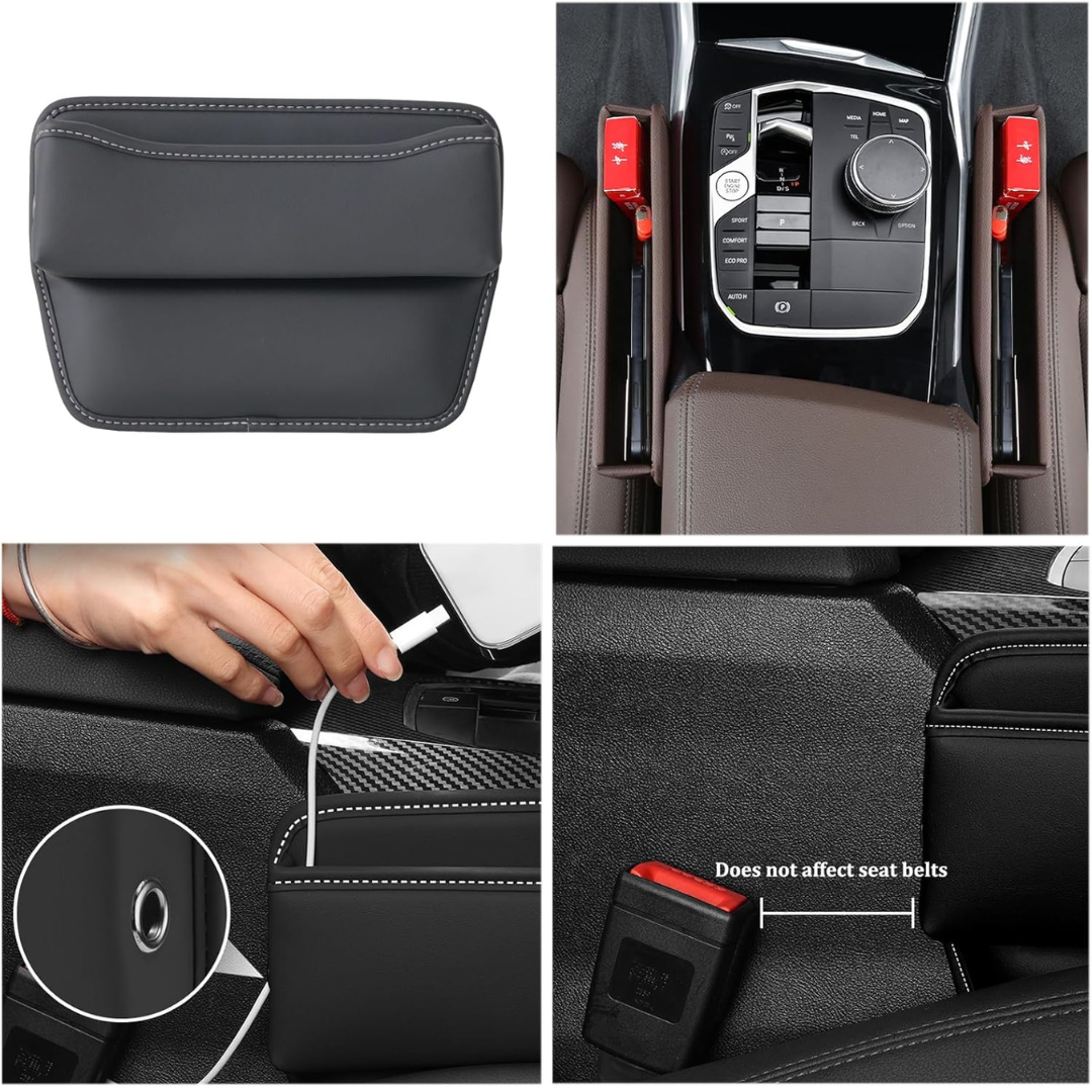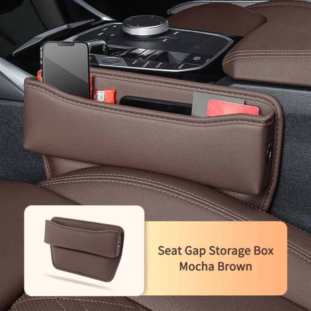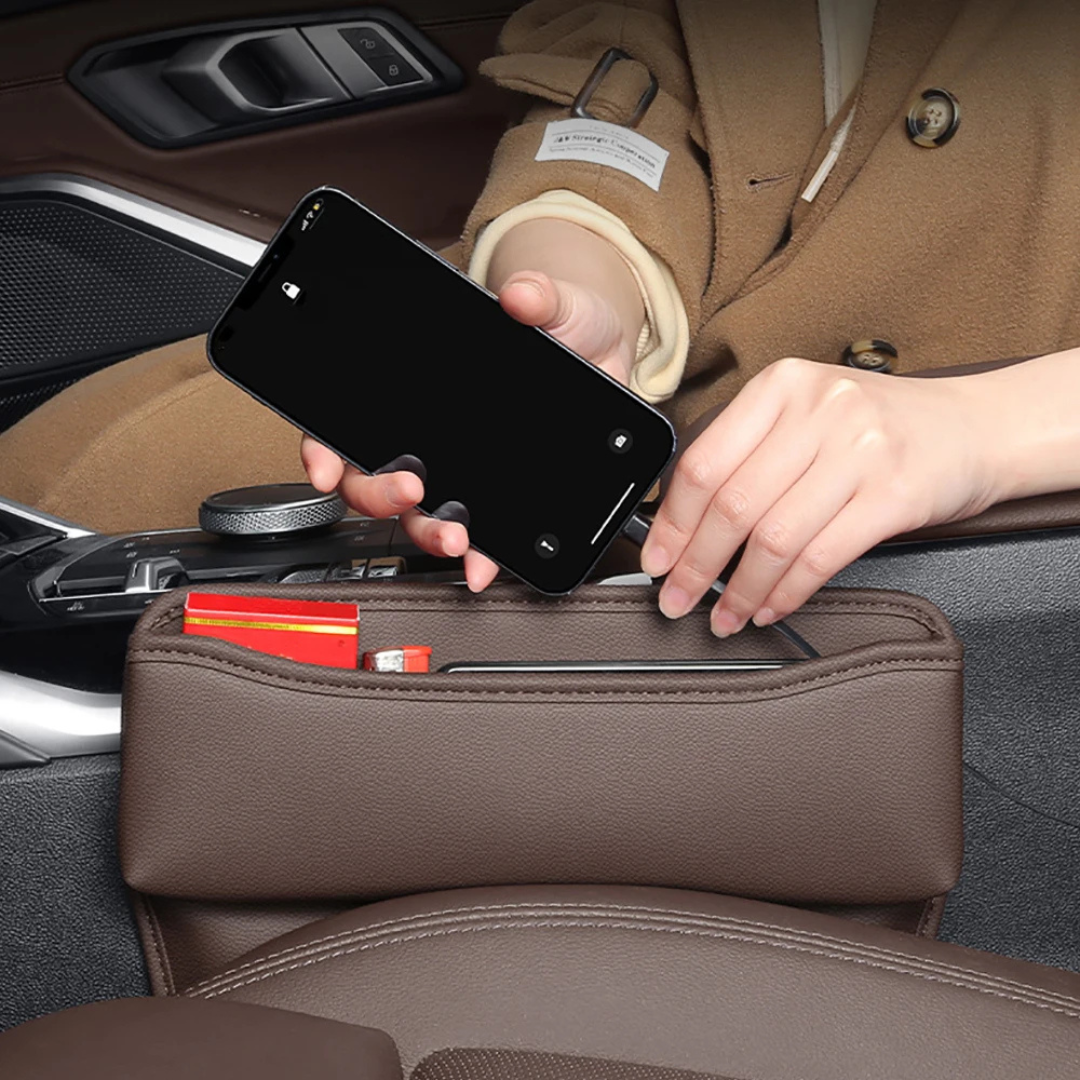 صندوق منظم لتخزين فجوات مقعد السيارة مصنوع من الجلد