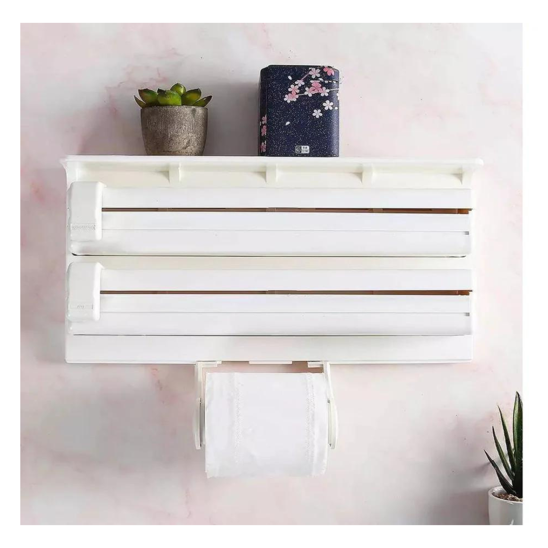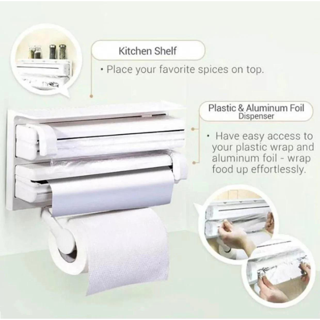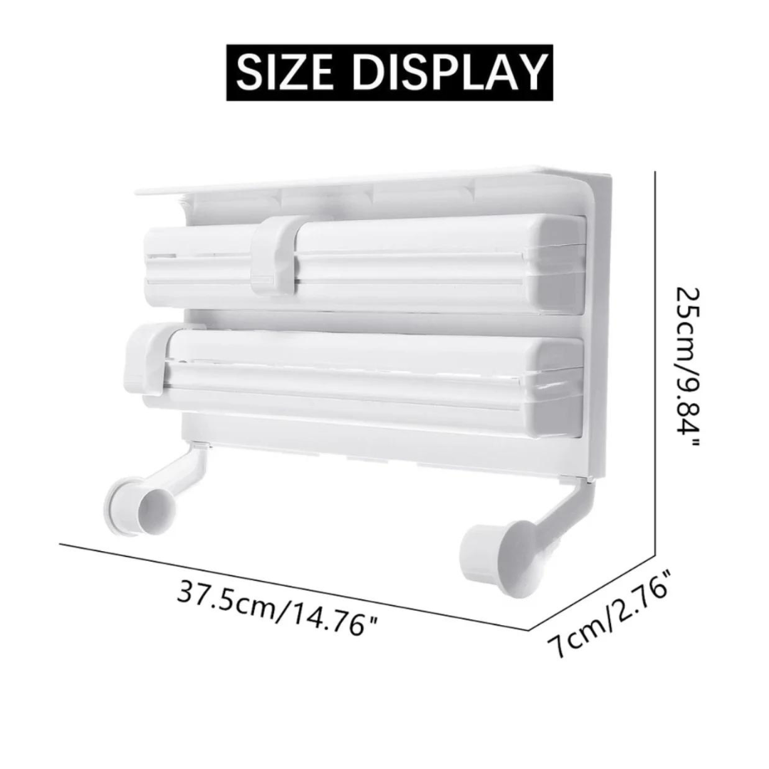 سعة متعددة اللفات: مع ثلاثة حوامل منفصلة، يمكنك تخزين وتوزيع لفات المناشف الورقية ورقائق الألومنيوم واللفائف البلاستيكية أو صفائح التغليف البلاستيكية كلها في وحدة واحدة مدمجة. قل وداعًا للأدراج والخزائن المزدحمة.