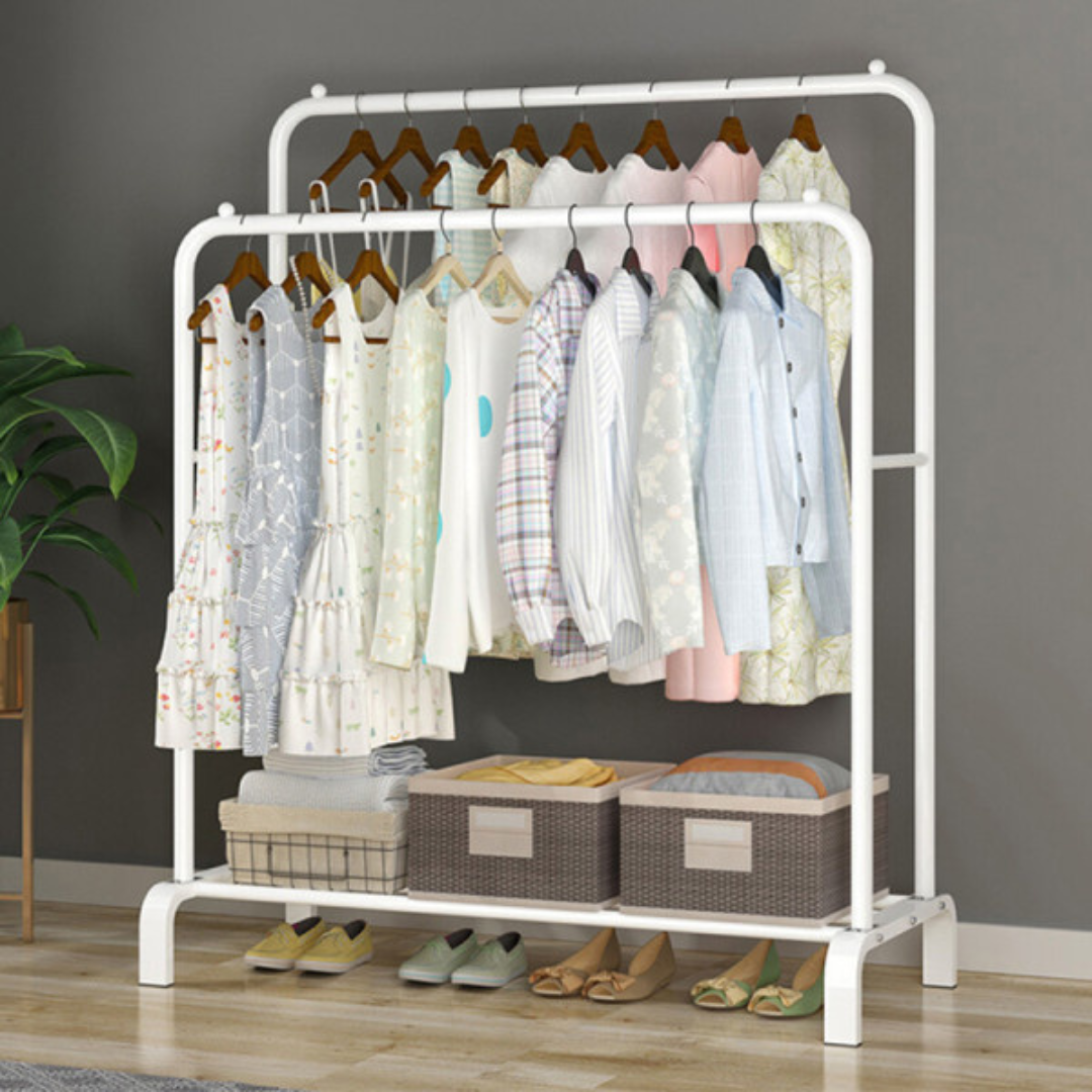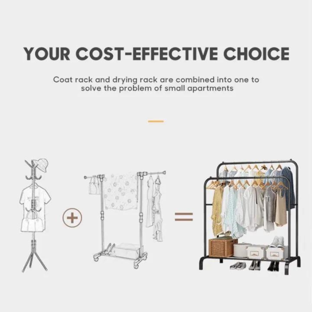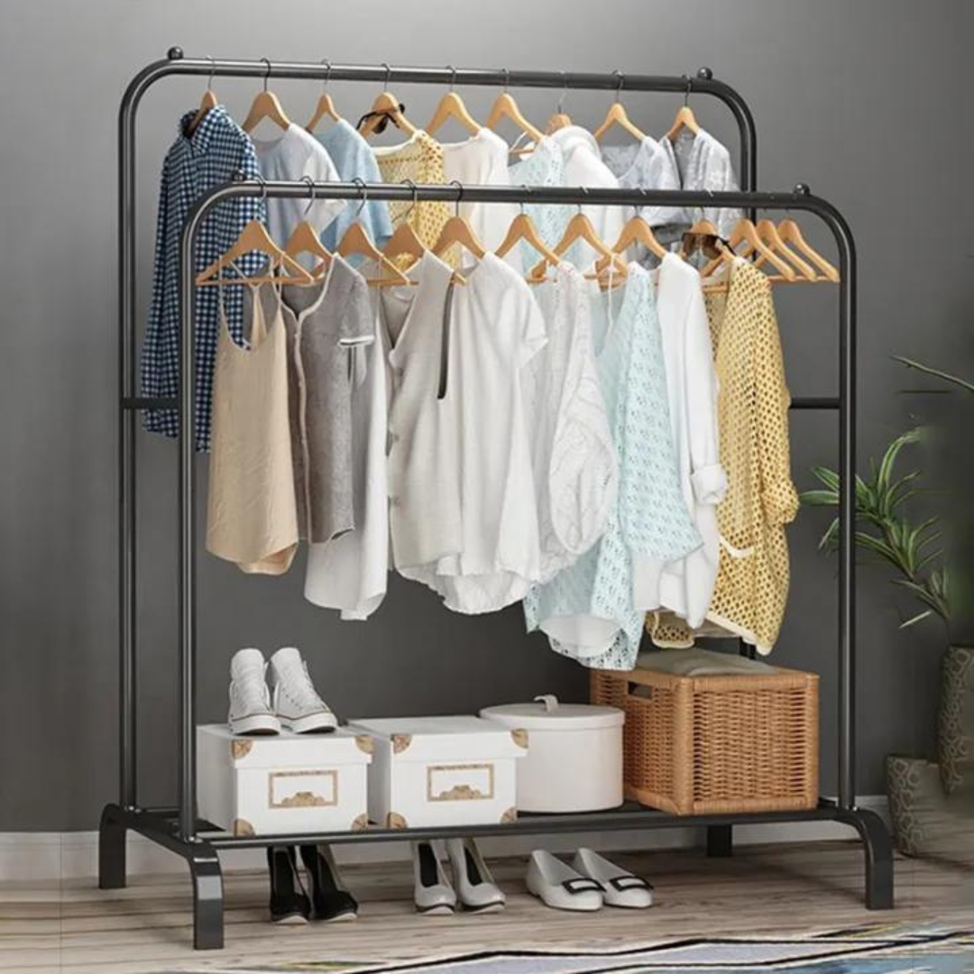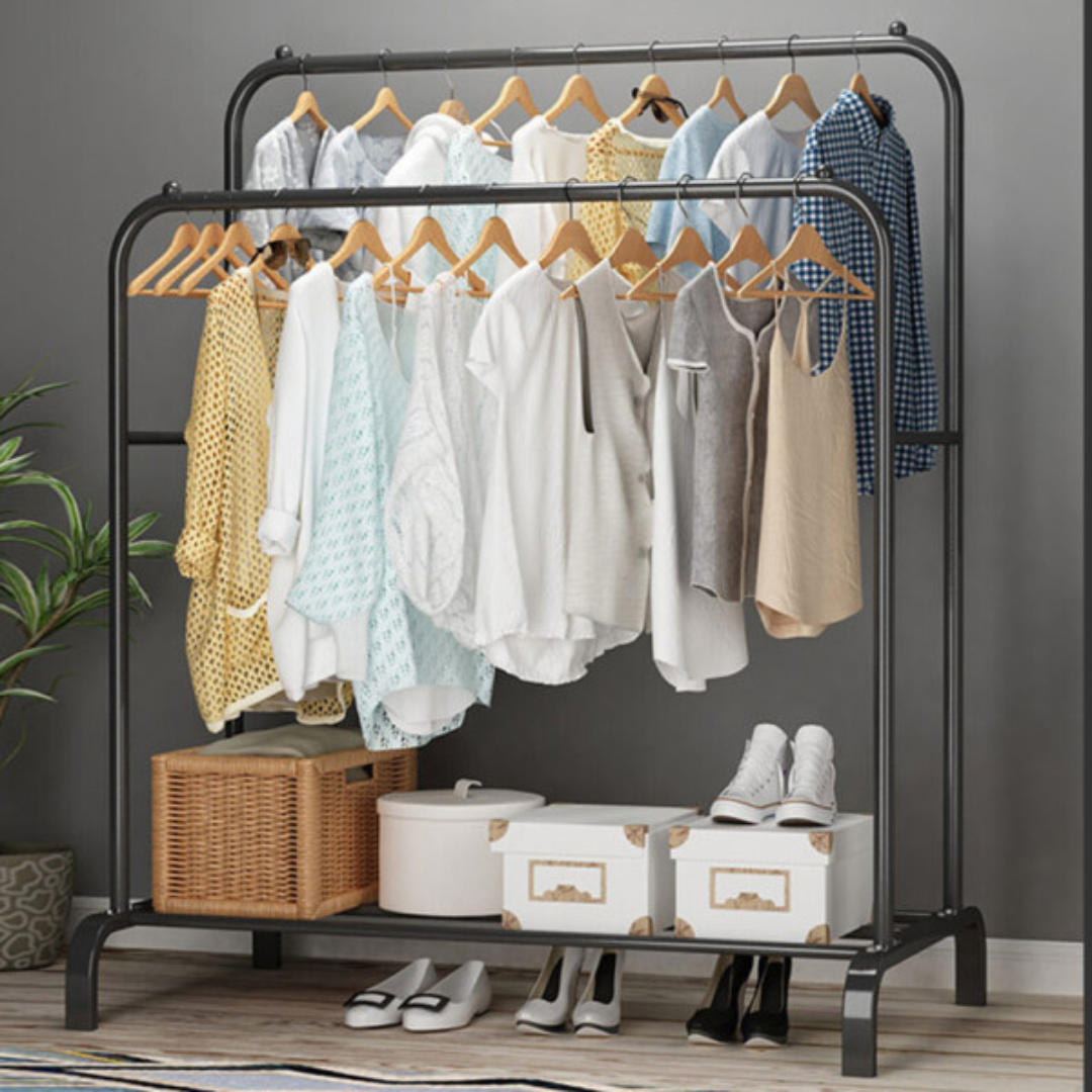 علاقة ملابس ذات عمود مزدوج، حامل قماش عالي التحمل من الفولاذ المقاوم للصدأ