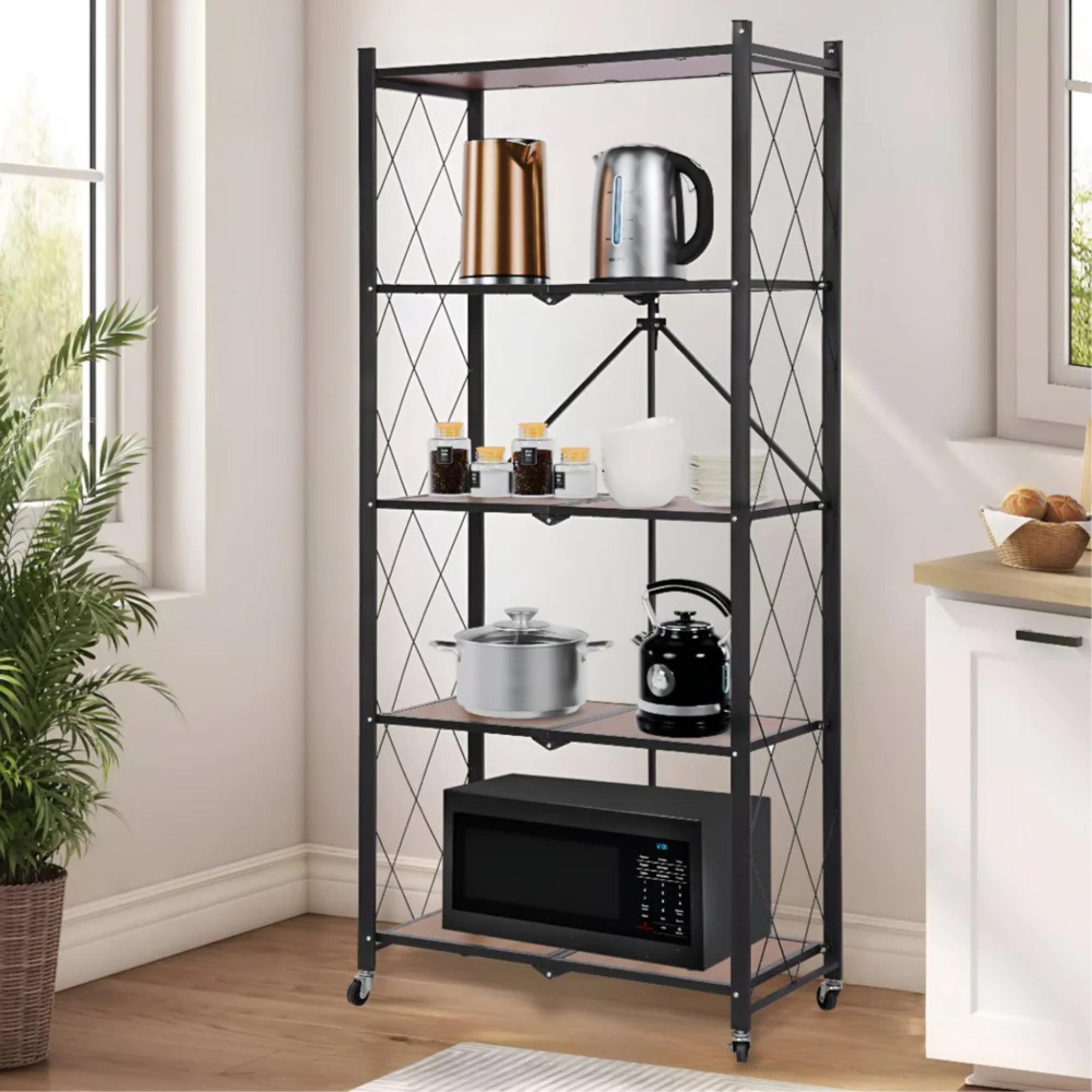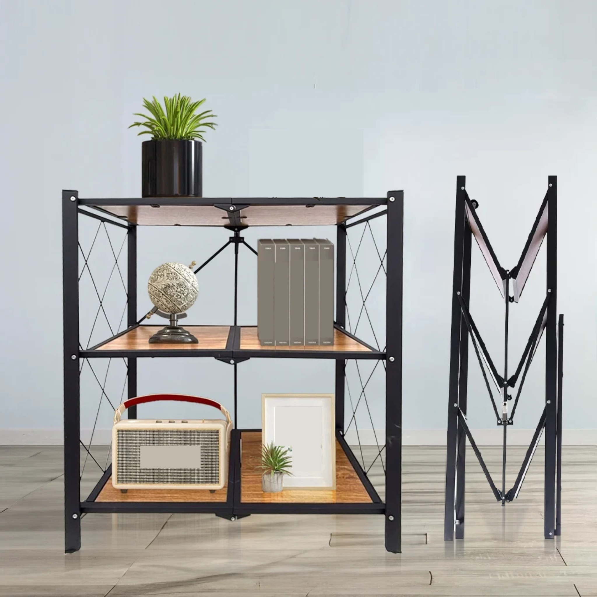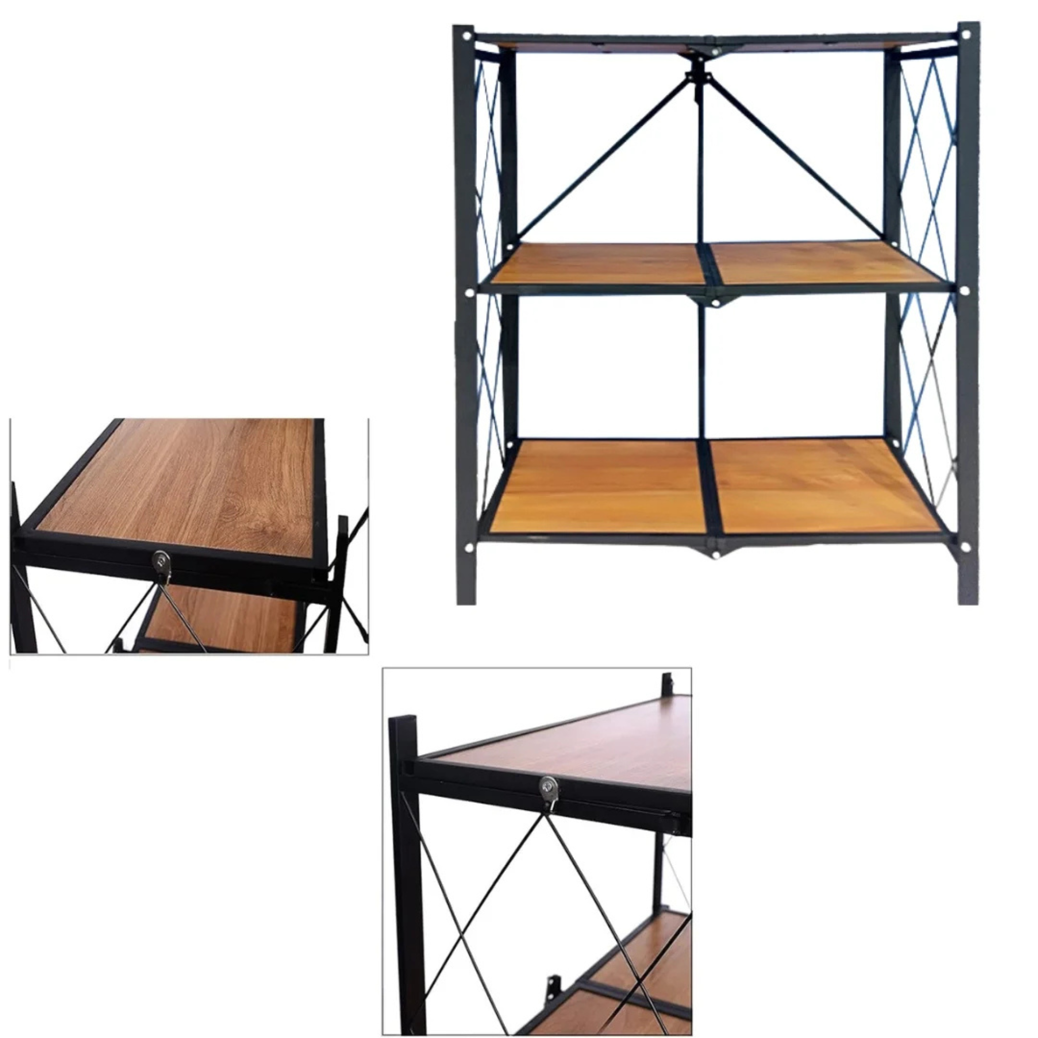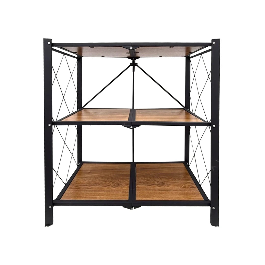 رف تخزين قابل للطي عالي التحمل مع رف خشبي للمطبخ والمنزل