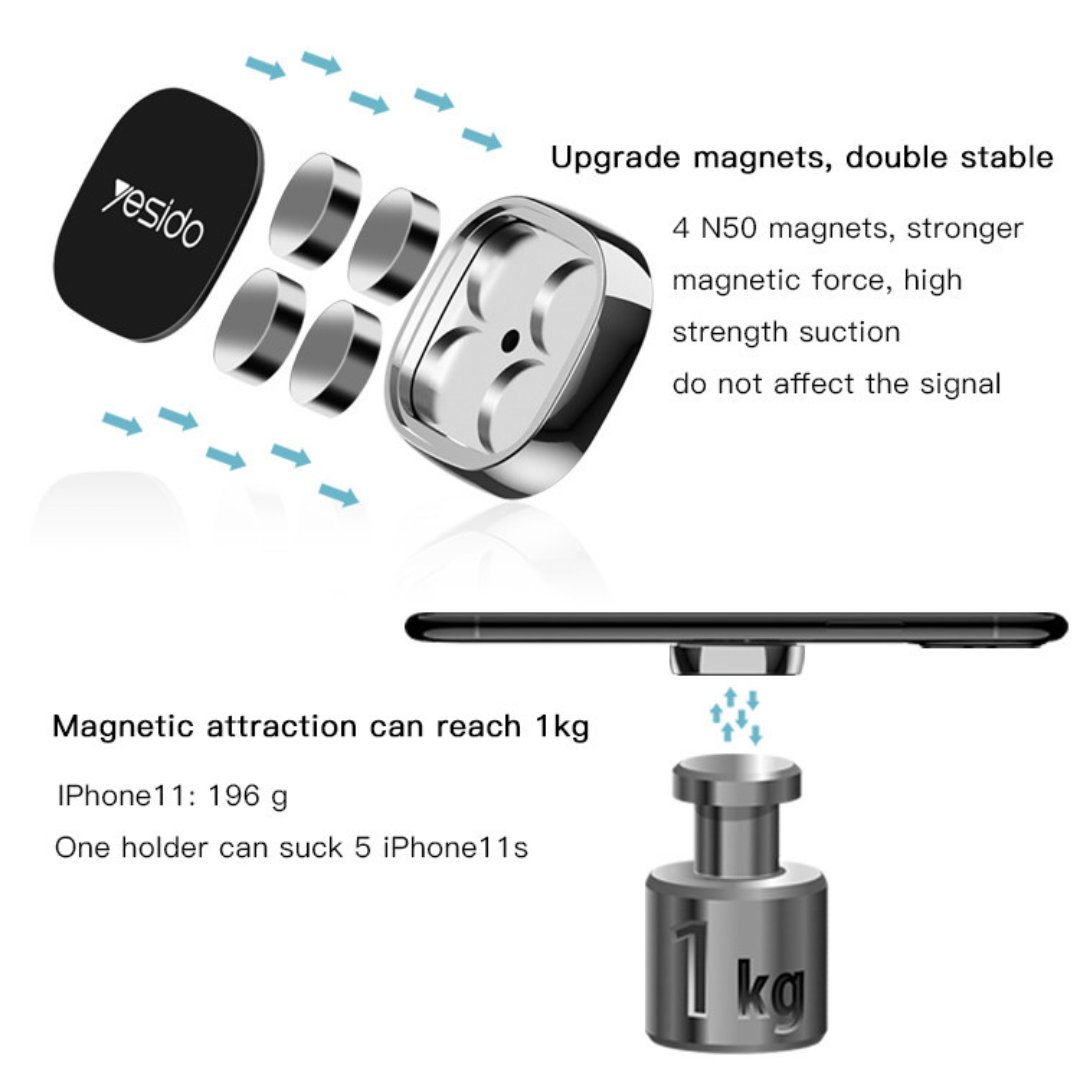 حامل مغناطيسي للهاتف المحمول فائق الصغر مثبت على لوحة القيادة في السيارة - Yesido C81