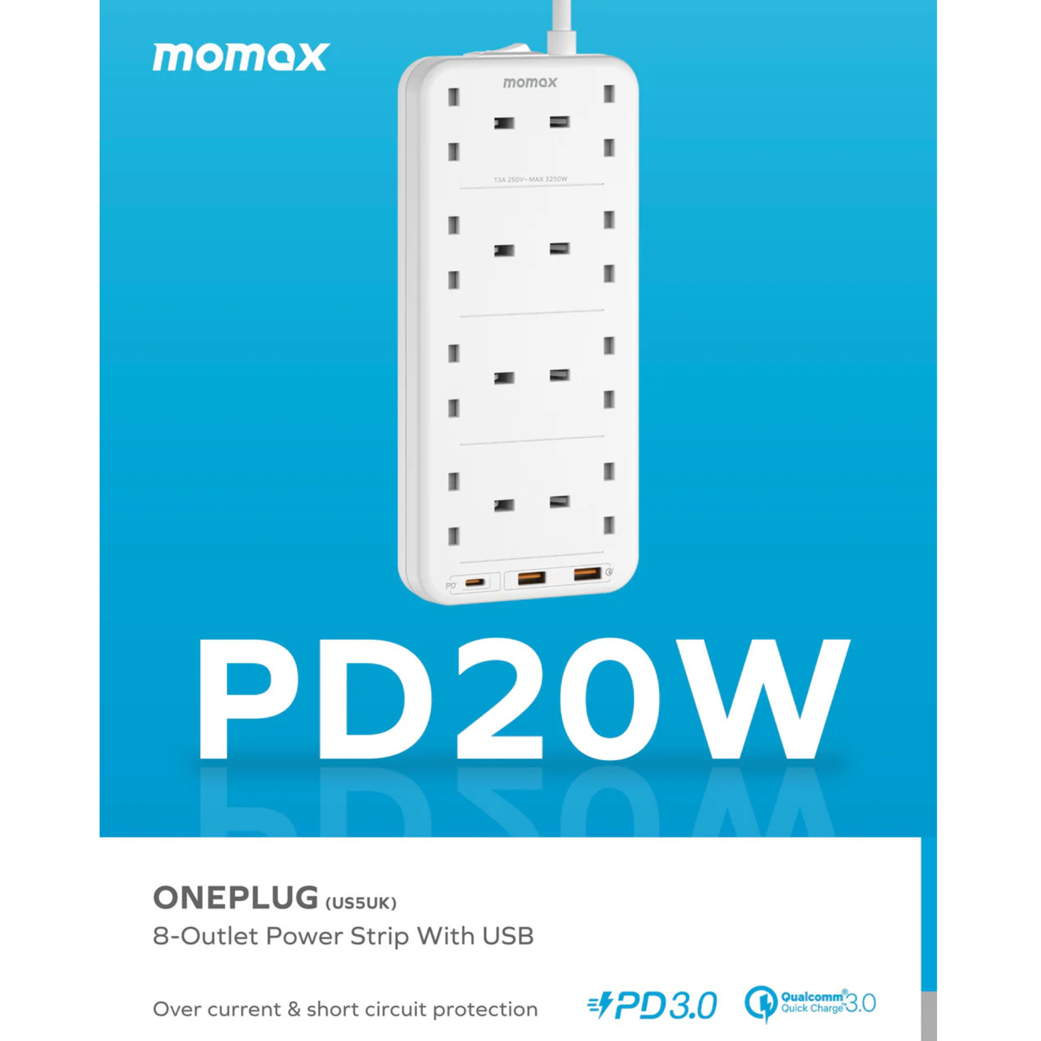 شريط طاقة Momax OnePlug بـ 8 منافذ مع USB