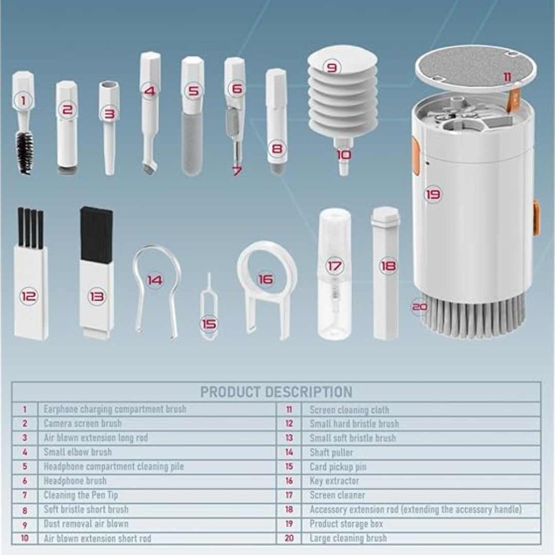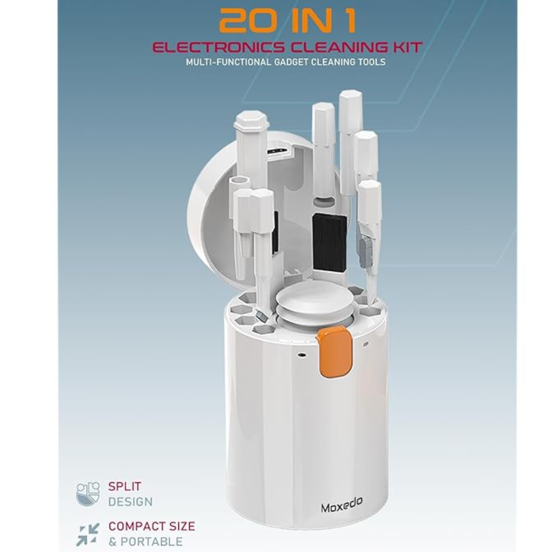 مجموعة تنظيف الأجهزة الإلكترونية 20 في 1 من موكسيدو - أدوات تنظيف أجهزة الكمبيوتر المحمولة ولوحة المفاتيح والهاتف وسماعات الأذن
