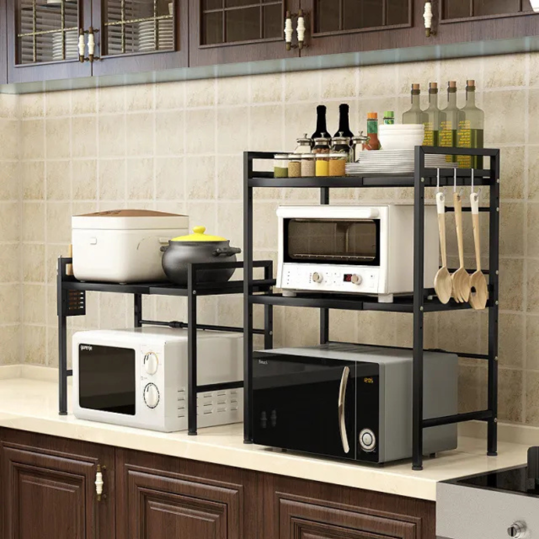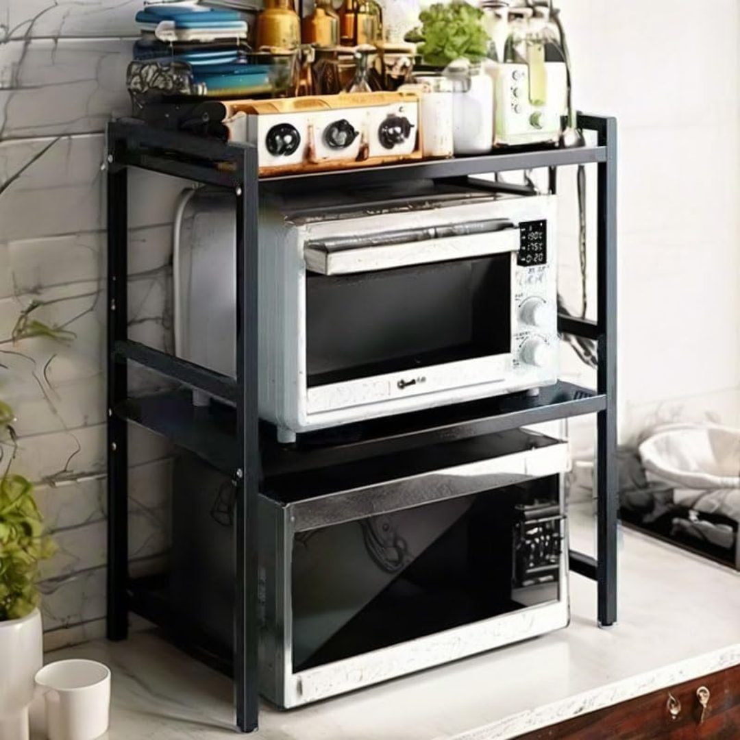 رف تخزين منظم متعدد الطبقات لفرن الميكروويف للمطبخ