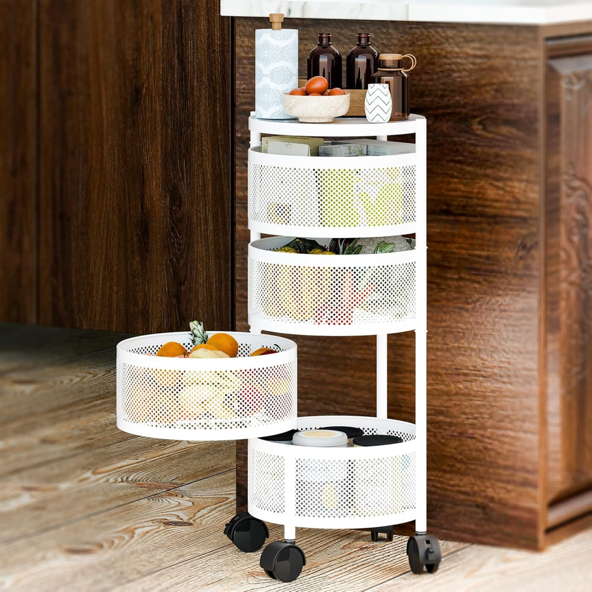 رف منظم لتخزين أدوات المطبخ متعدد الطبقات، دائري الشكل