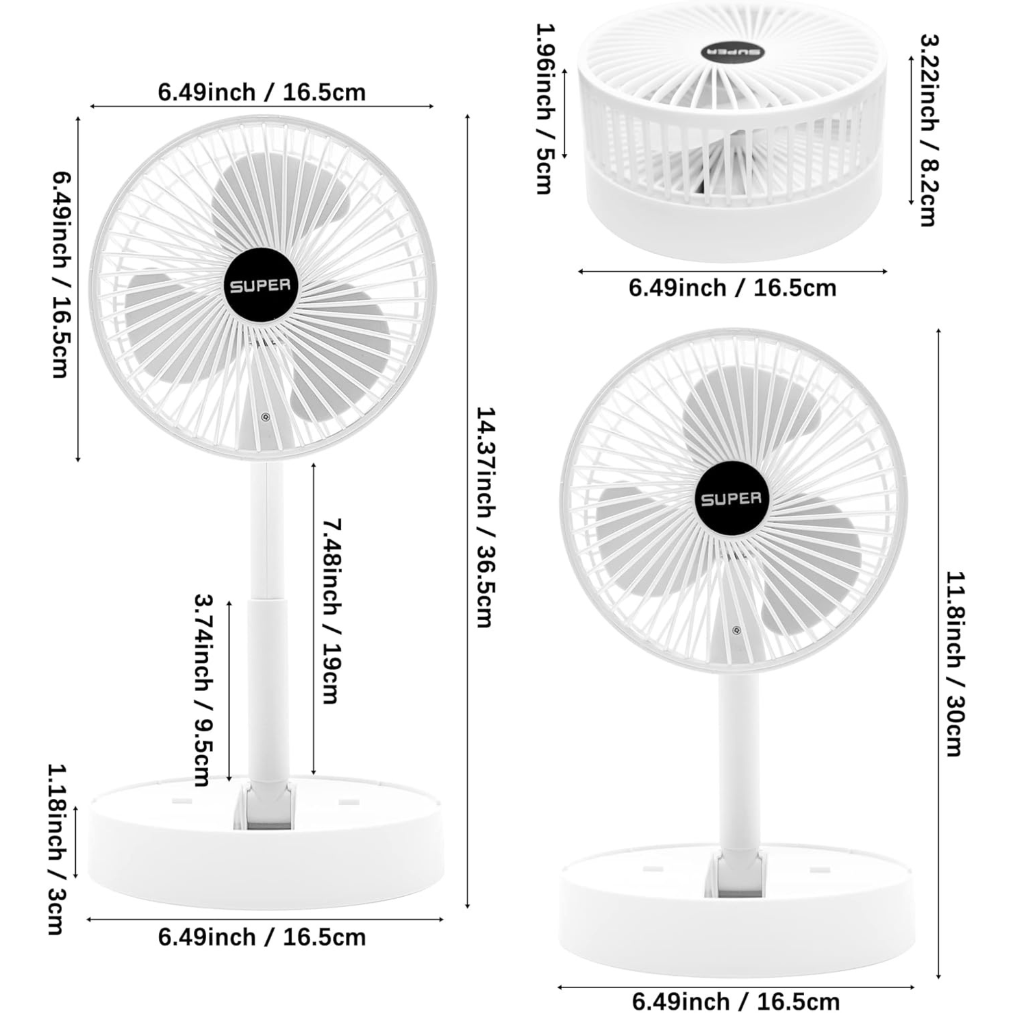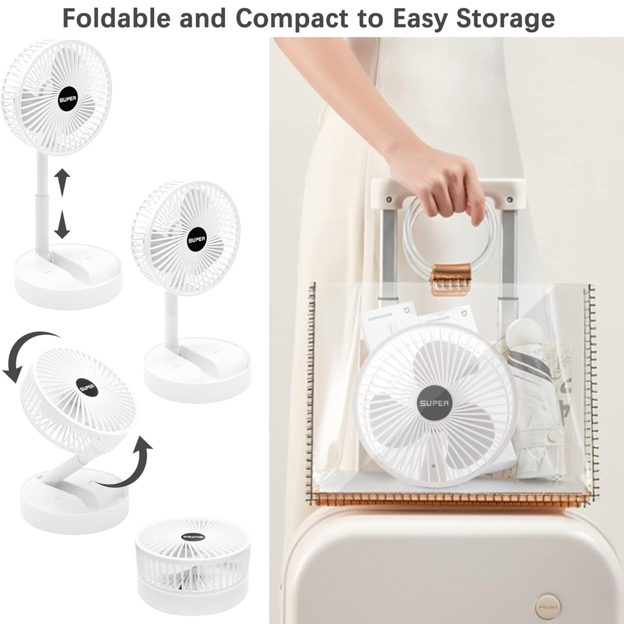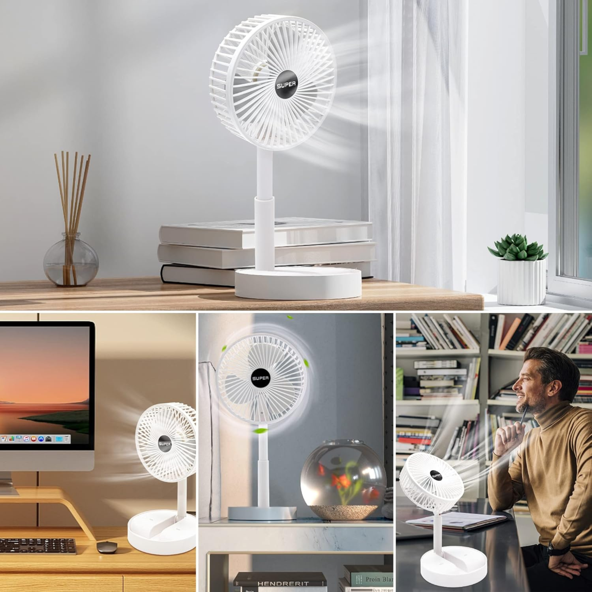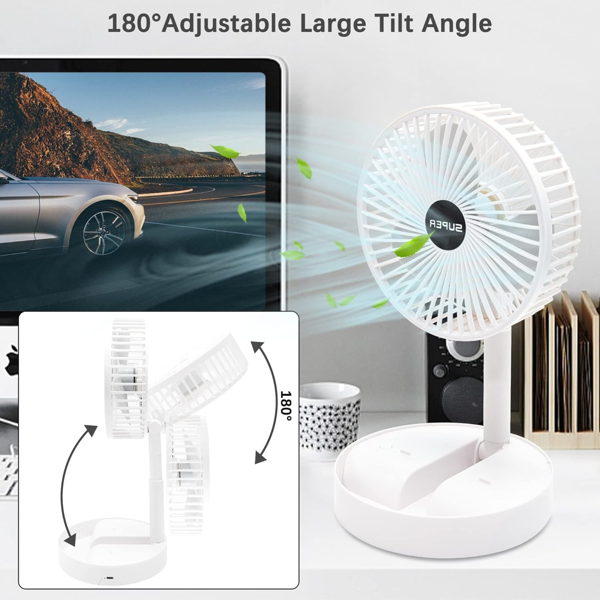مروحة مكتب محمولة قابلة للطي، قابلة لإعادة الشحن عبر USB، مروحة دوارة 180 درجة بثلاث سرعات
