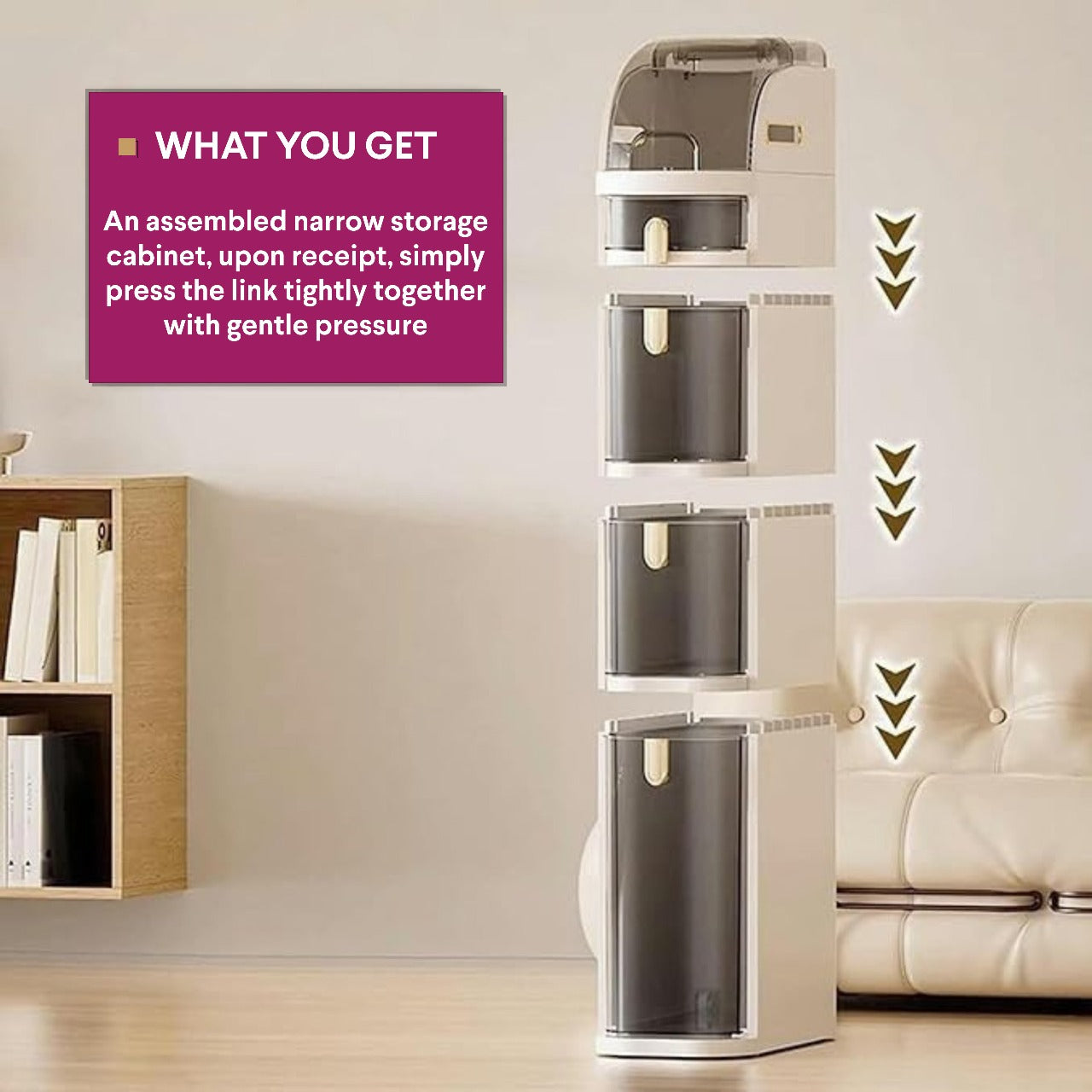 منظم تخزين ذكي للحمام بمساحة ضيقة، خزانة ذات أدراج وخزانة أرضية
