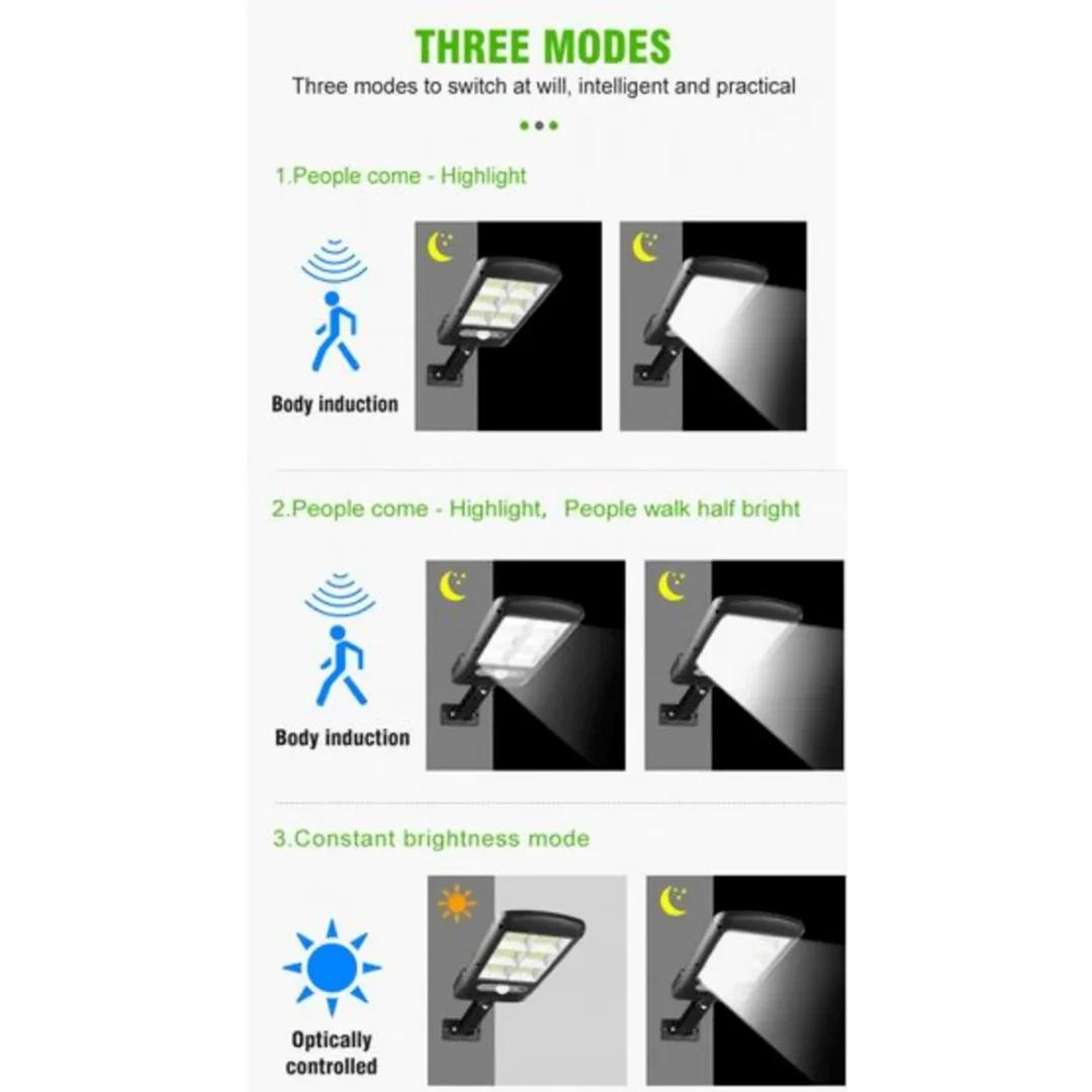 ضوء الشارع LED COB بالطاقة الشمسية في الهواء الطلق مع مستشعر الحركة و3 أوضاع إضاءة