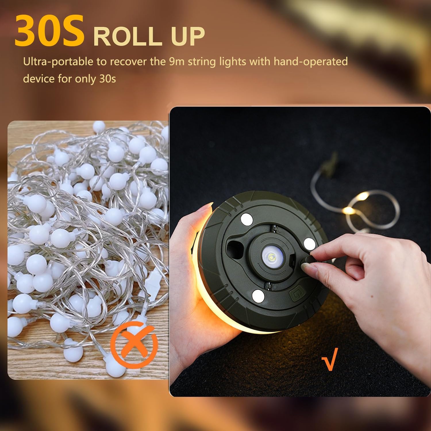 سلسلة مصابيح LED للتخييم - 8 أمتار قابلة للشحن عبر USB - مصباح تخييم محمول