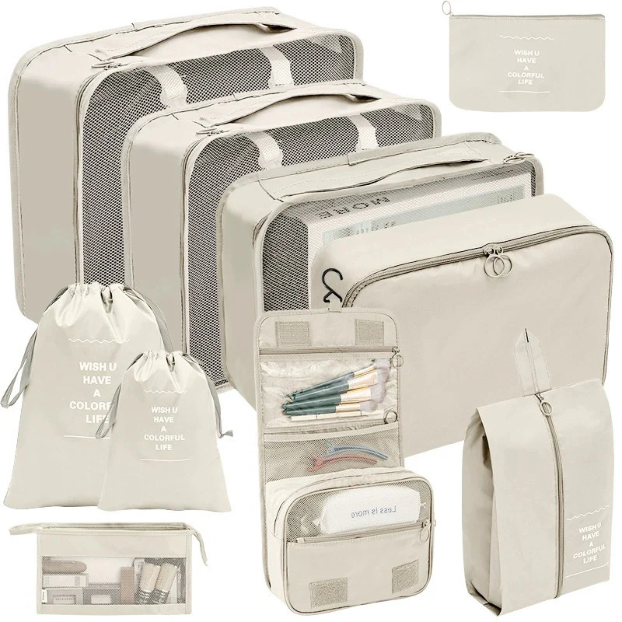 ✅ Complete 10-Piece Set – Includes various-sized packing cubes, laundry bags, and toiletry pouches for efficient organization.