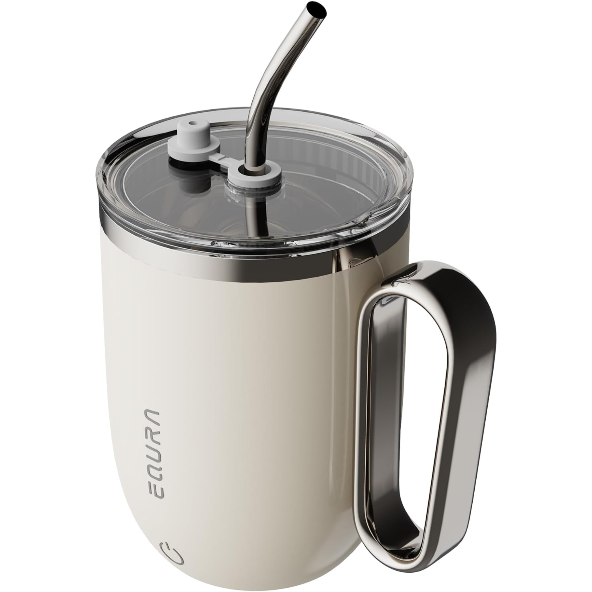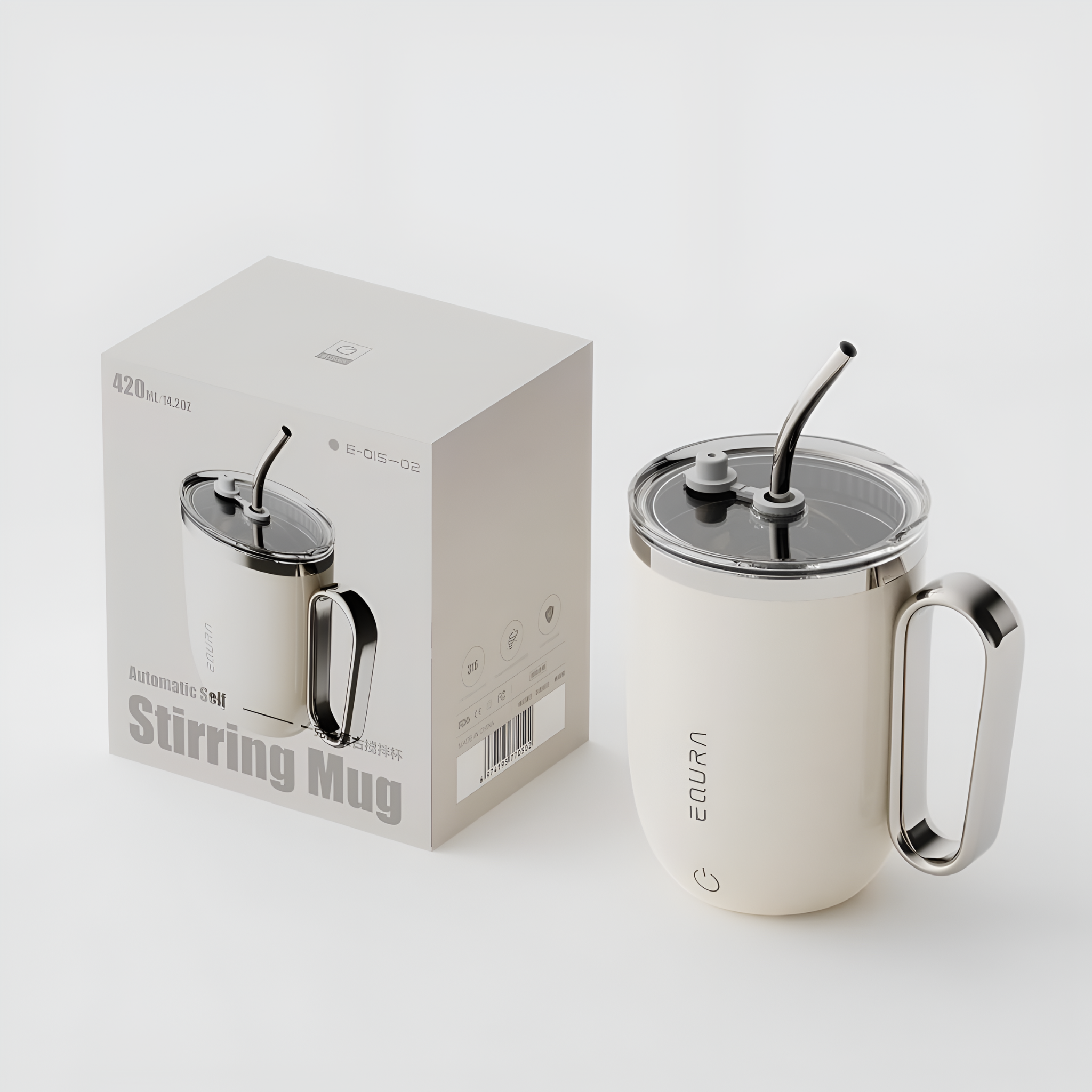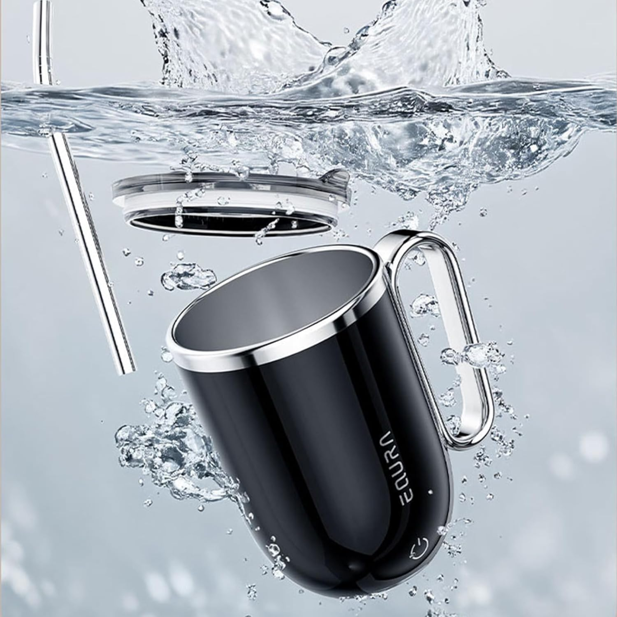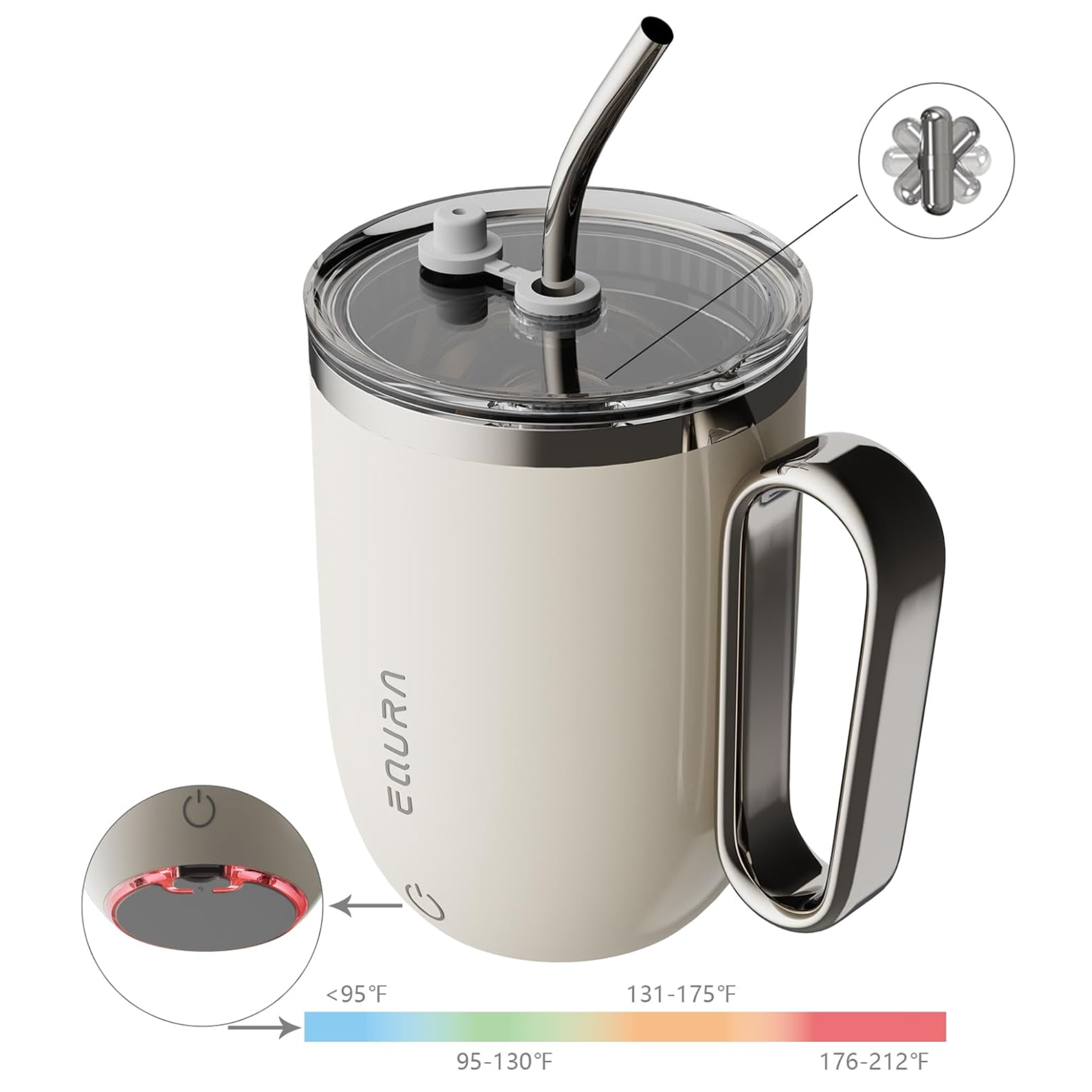 420ml Self Stirring Coffee Mug with Straw and LED Display, Automatic Mixing Cup with Lid