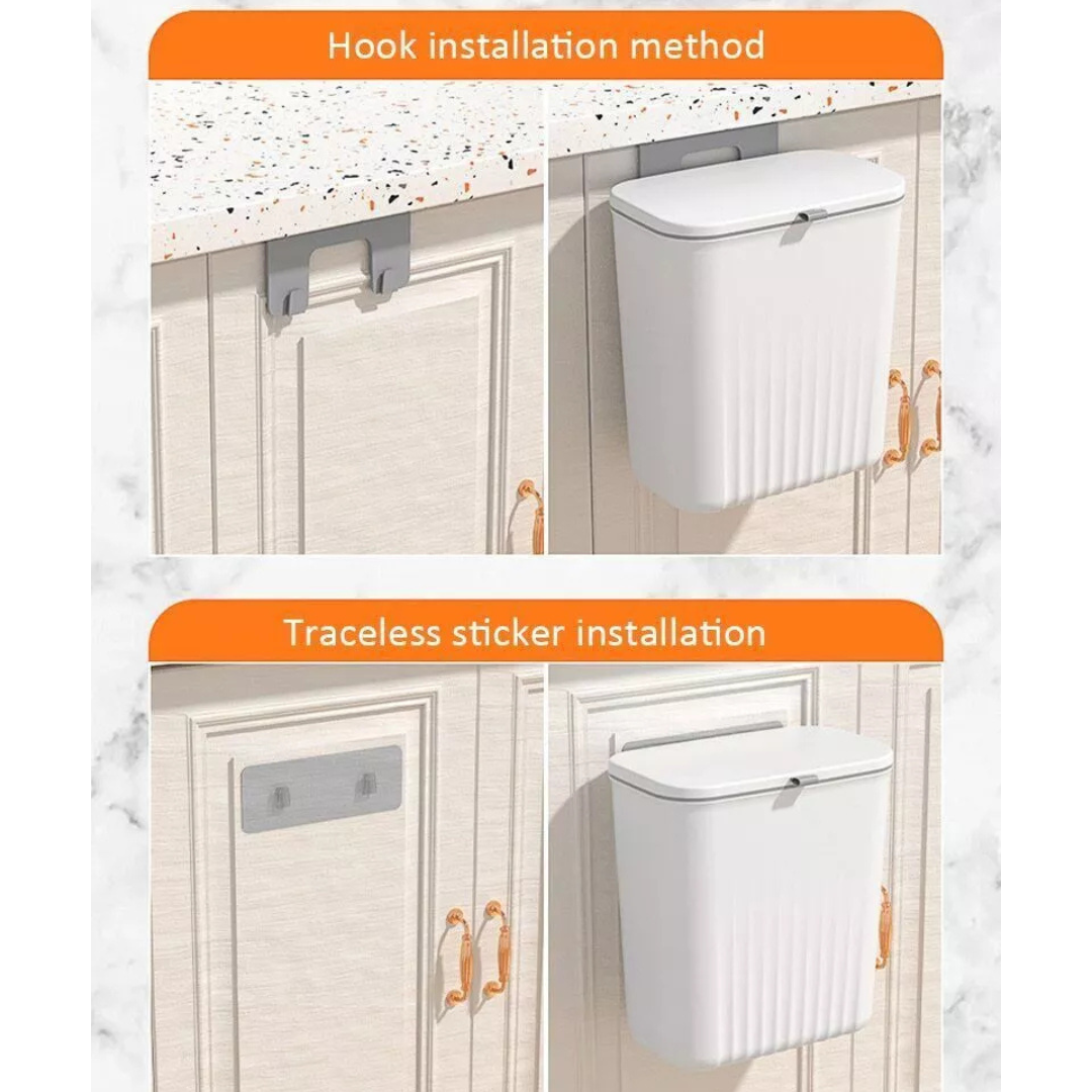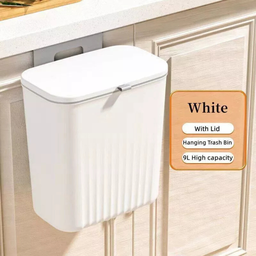 9 Liter Wall Mounted Kitchen Trash Bin, Hanging Waste Bin with Lid