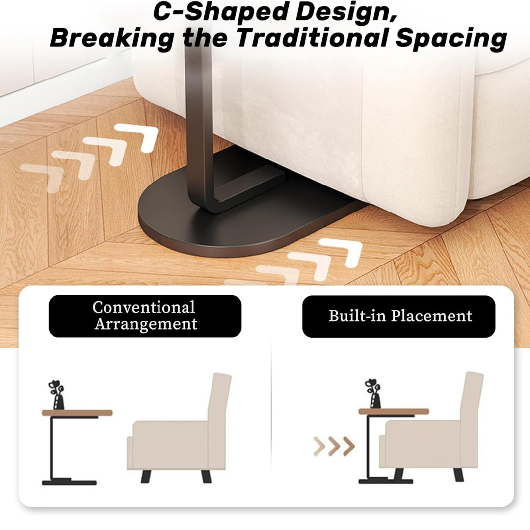 - C Shaped Design: Easily fits with sofa and other furniture for space-saving convenience.