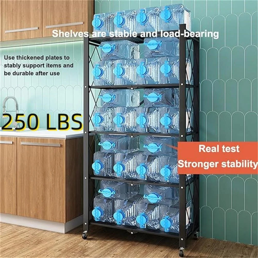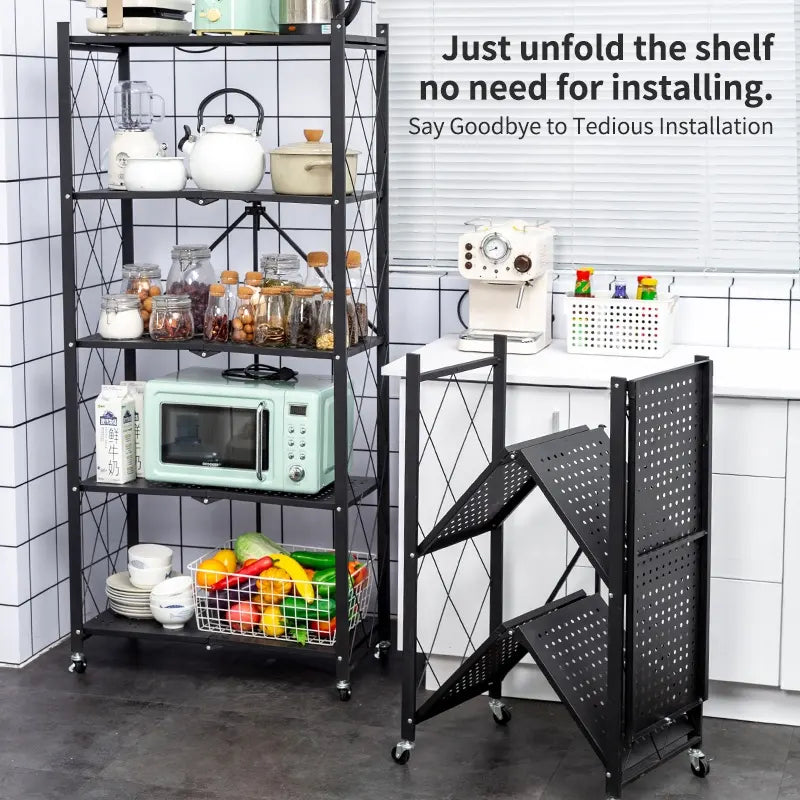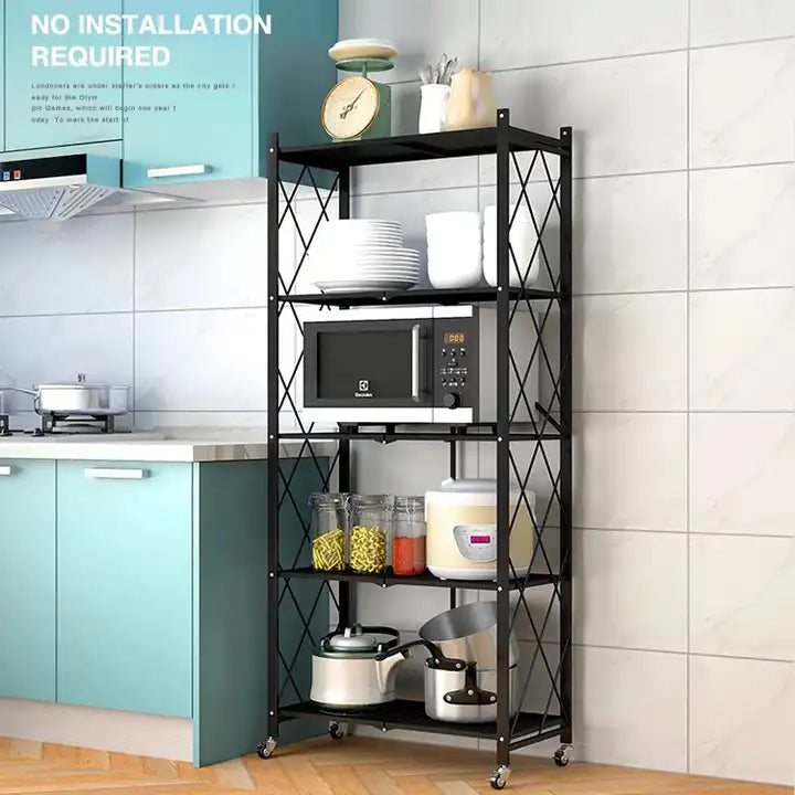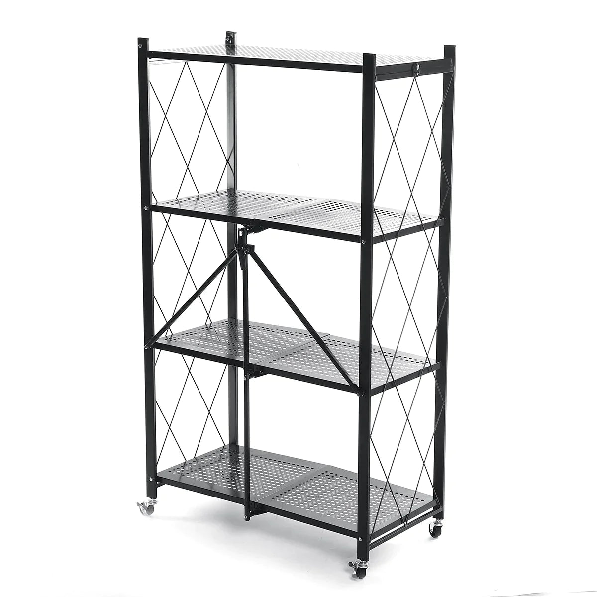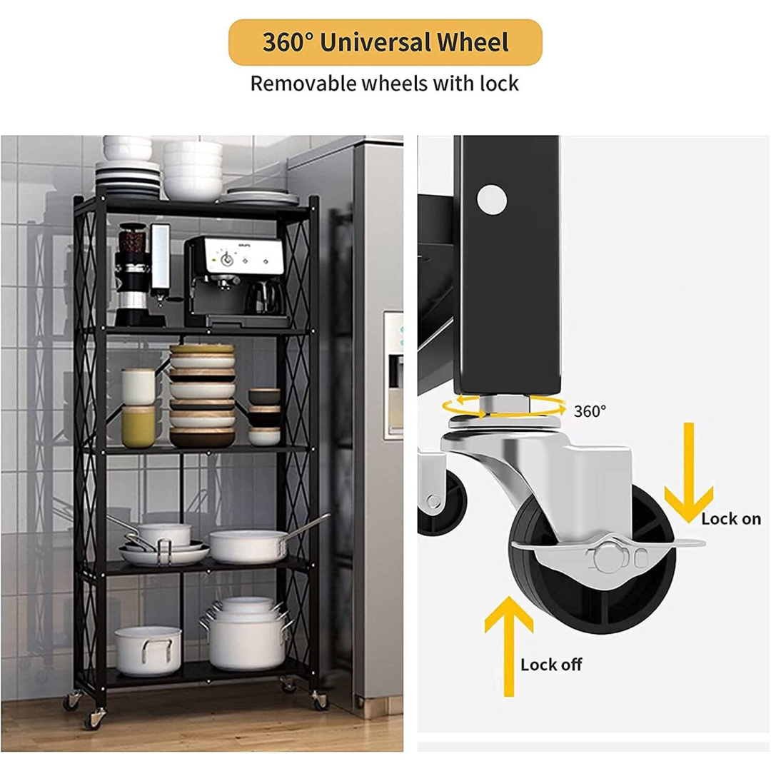 Multi Tier Heavy Duty Foldable Kitchen Storage Rack with Wheels
