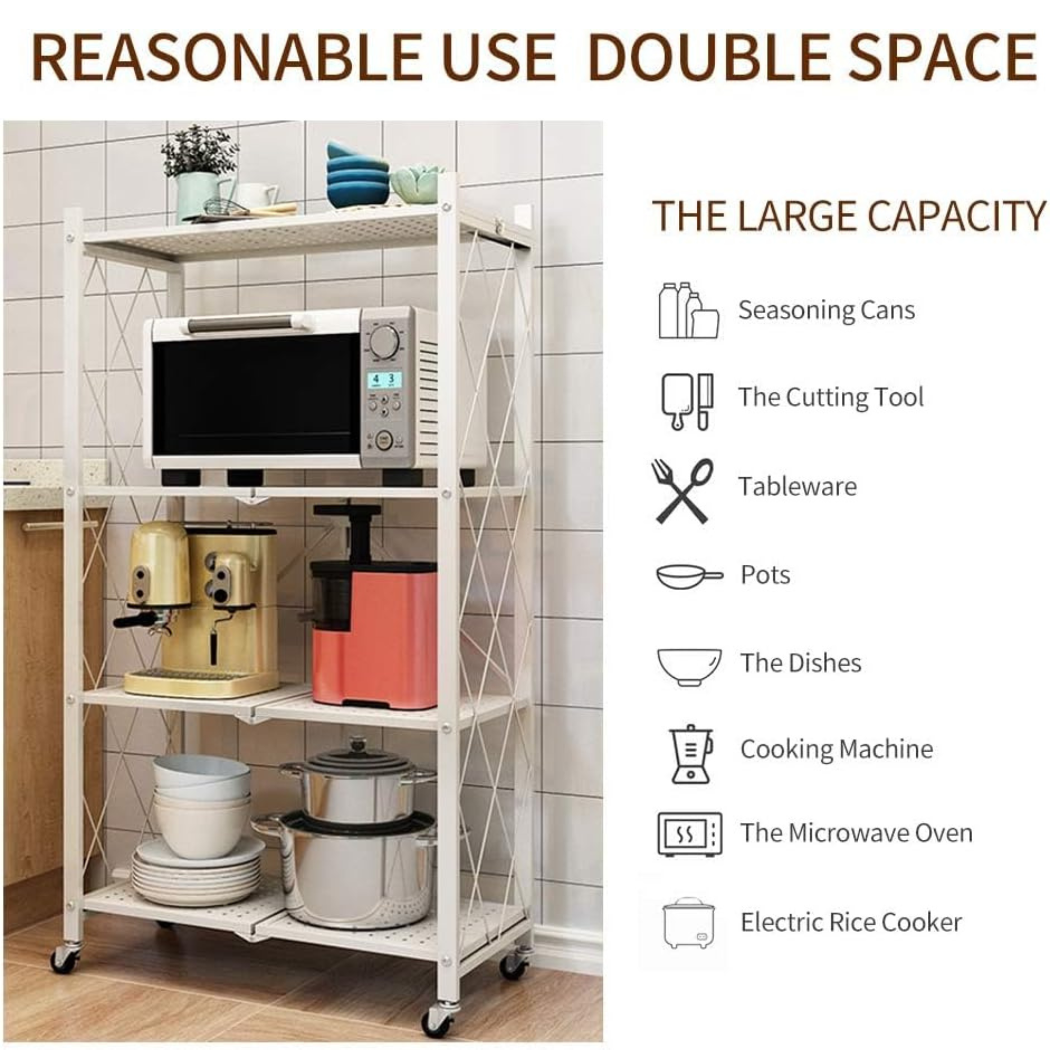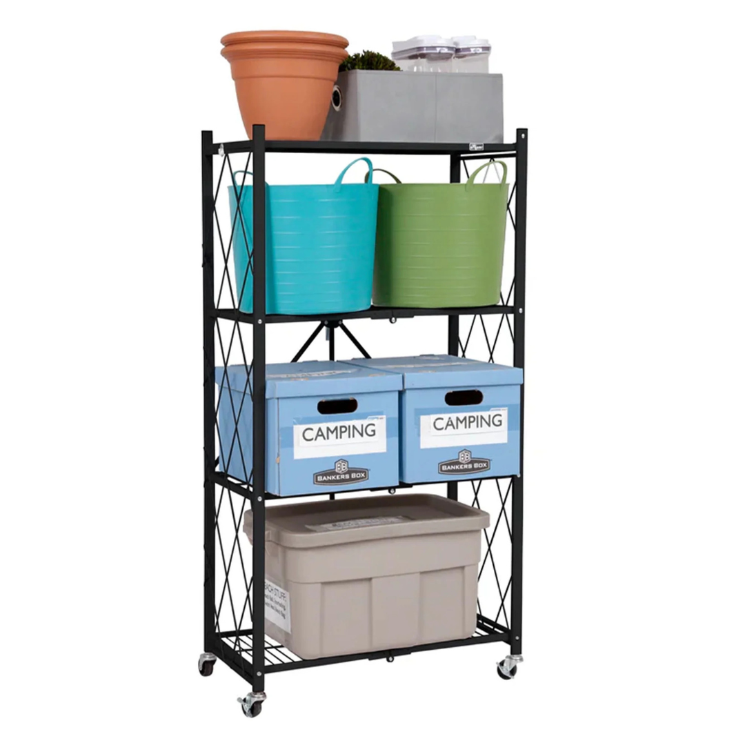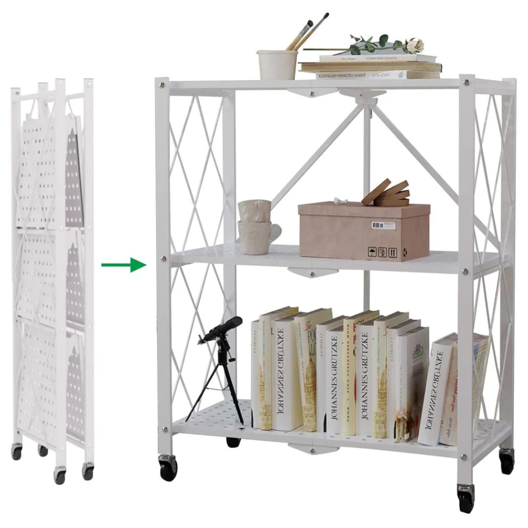 Multi Tier Heavy Duty Foldable Kitchen Storage Rack with Wheels