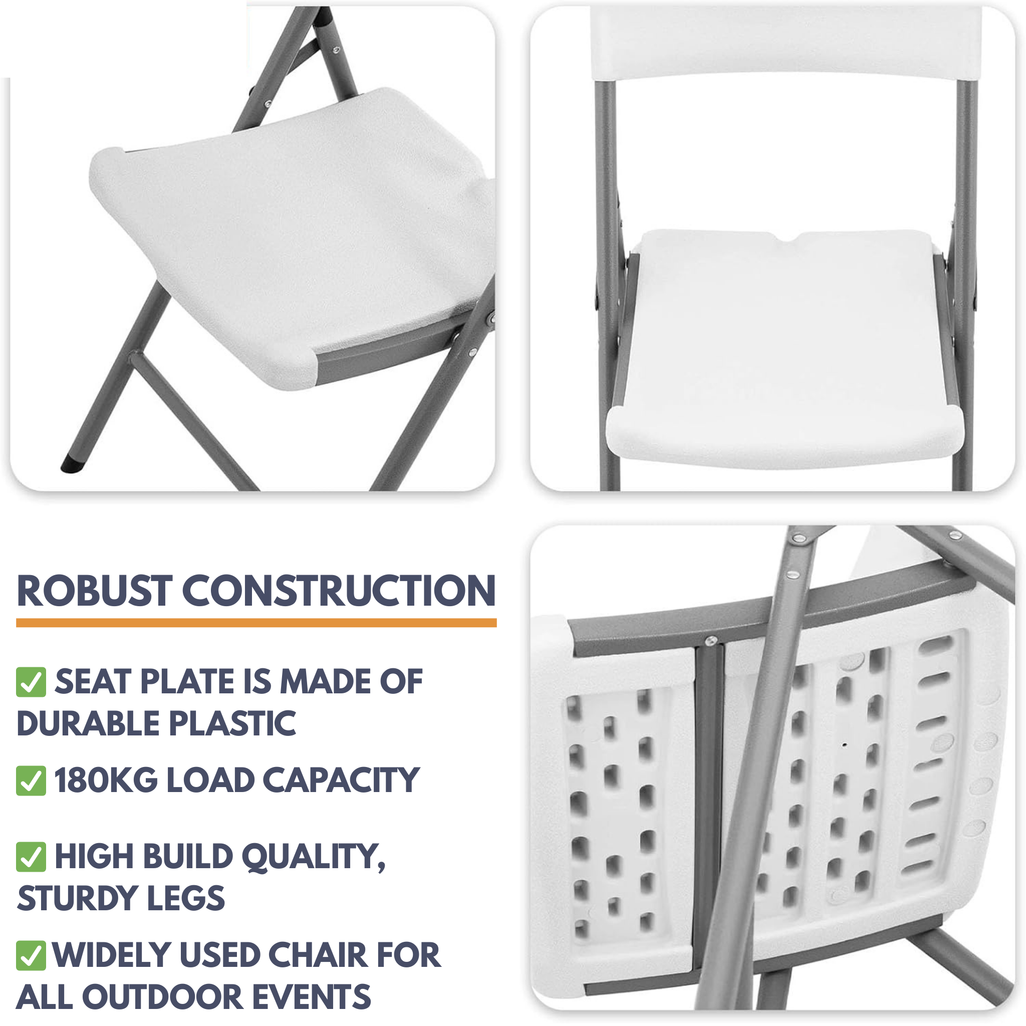 Folding outdoor plastic chair, designed with a rustproof frame and durable HDPE (high density polyethylene plastic) material for long-lasting use. Built with a strong structure and premium build quality, this chair is one of the most common outdoor chairs, perfect for every occasion.