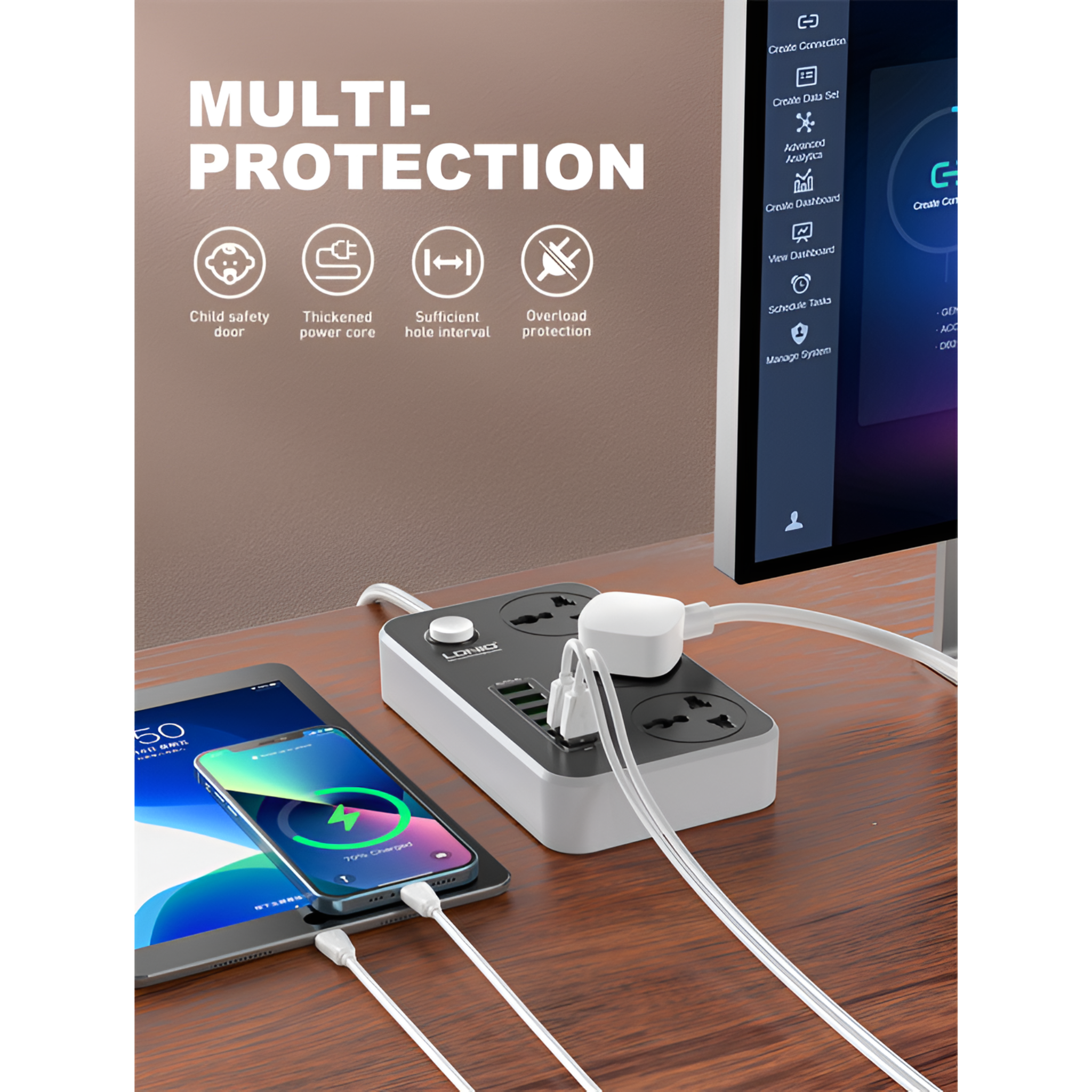 LDNIO SC3604 2500W Power Socket with 3 Outlets Universal Power Strip