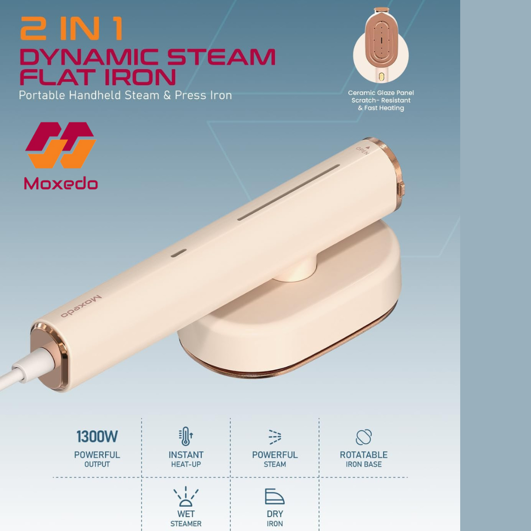 Moxedo 2-in-1 Dynamic Steam Flat Iron - Portable Handheld Steam and Press Iron