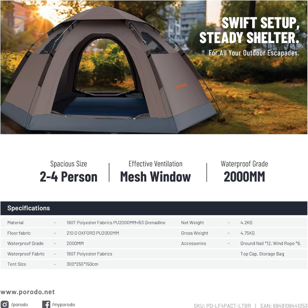 Porodo Lifestyle Automatic Camping Tent for 2-4 Person