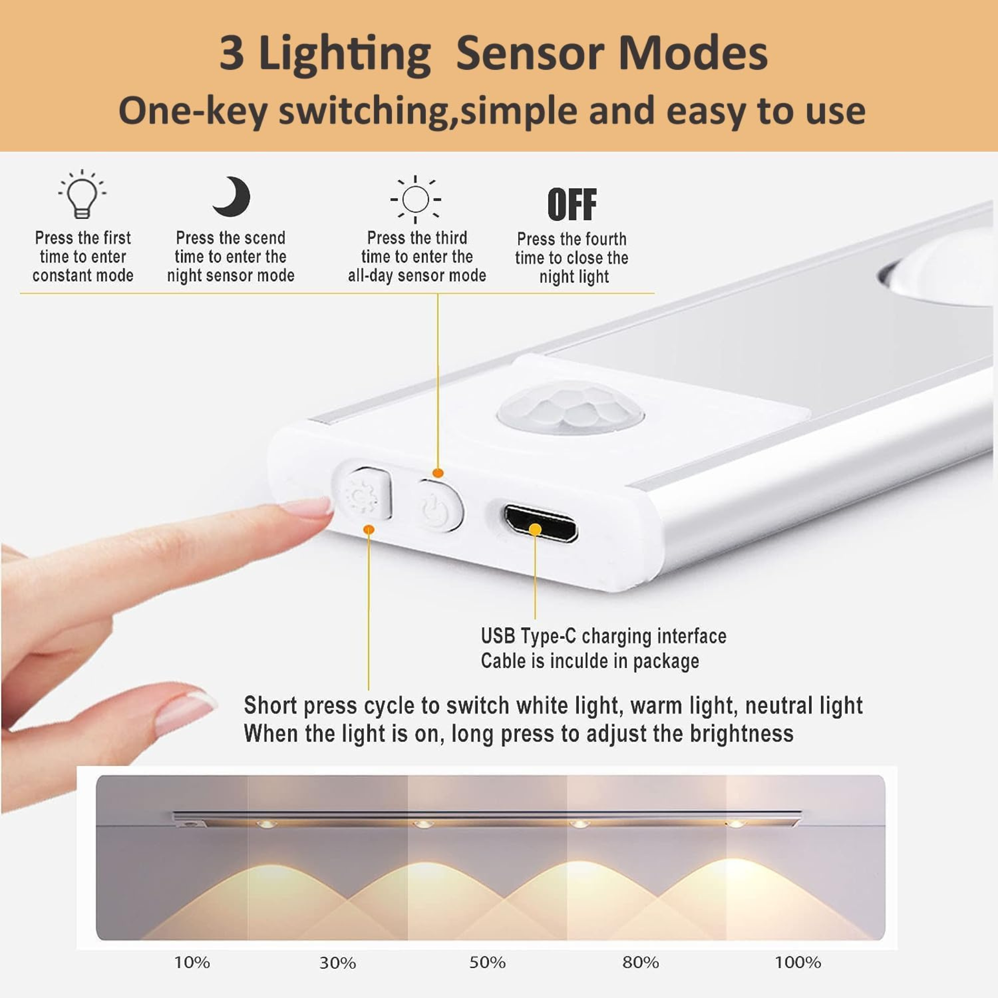 ✅ Light Modes: Pure white, warm white and mixed combination.