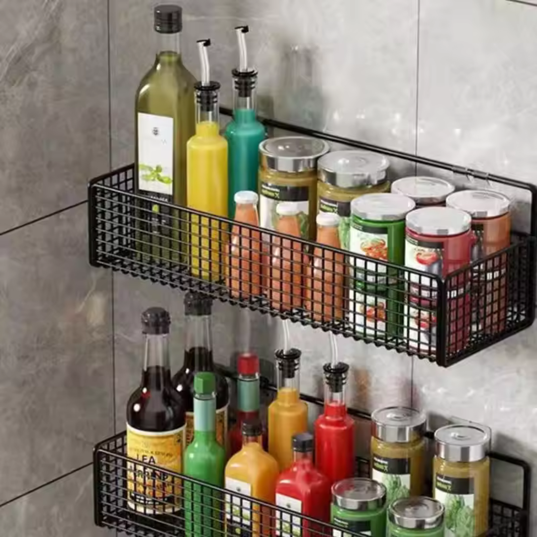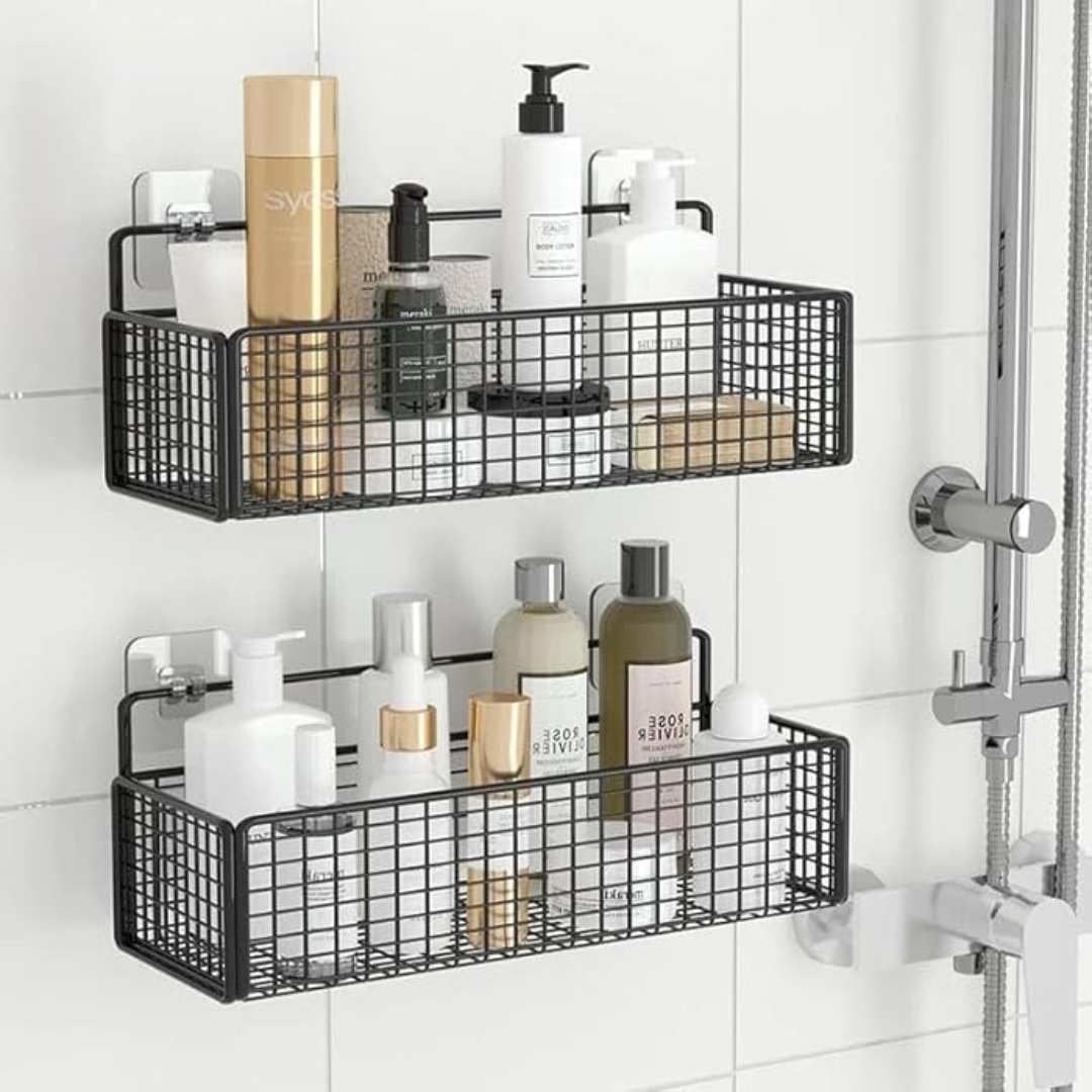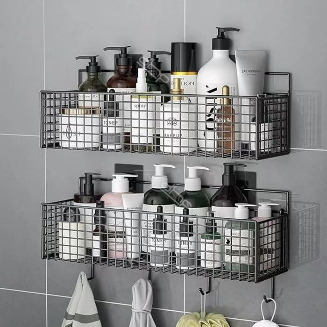 Wall Mounted No Drilling Metal Organizer Basket Shelf for Bathroom