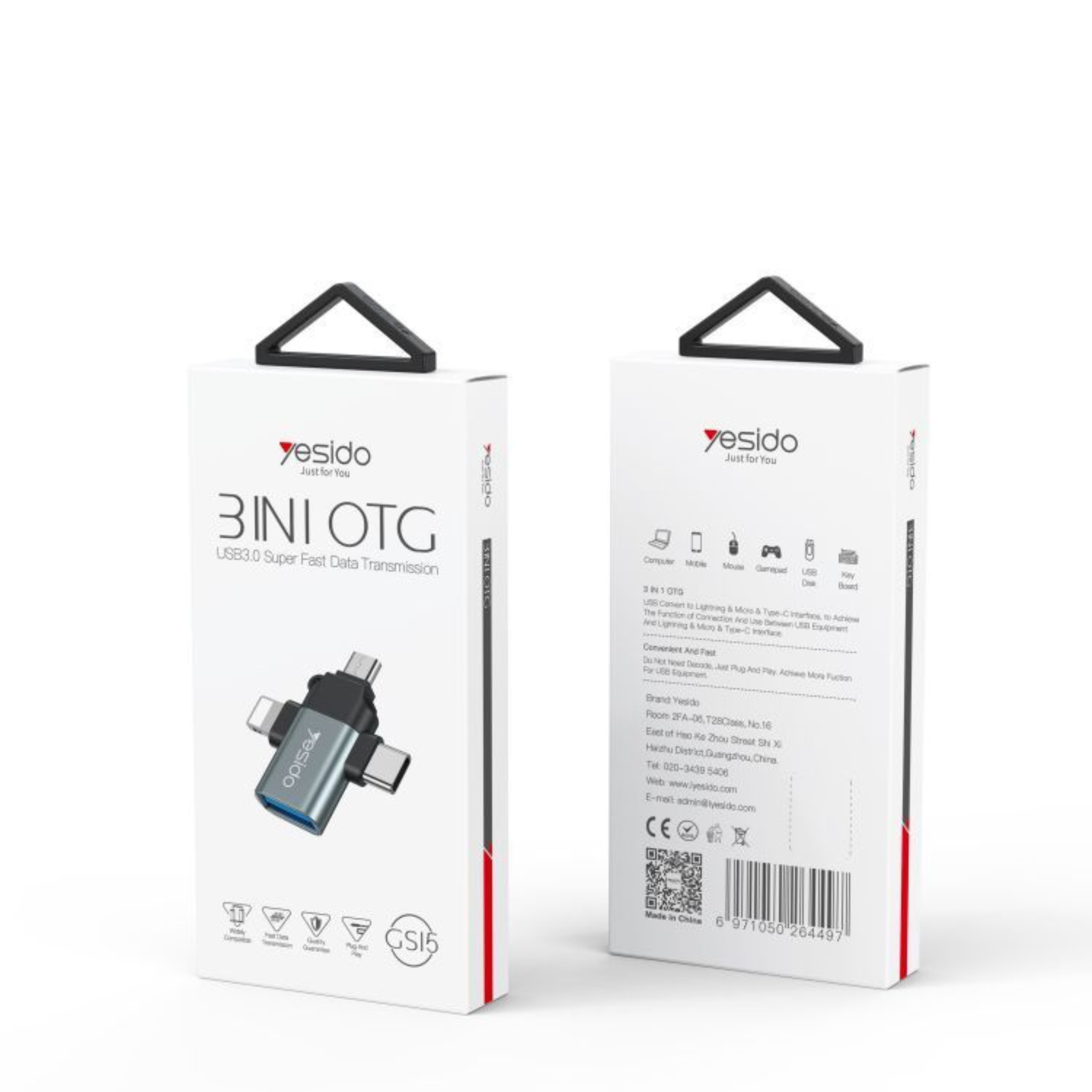 Yesido GS15 3 IN 1 USB To USB Type C Micro Lightning OTG Adapter